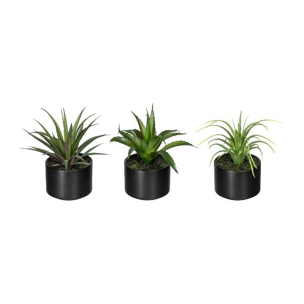 Dekorativní sukulentní aranžmá FLUKE v keramickém květináči, 3 kusy, zelená, 15cm