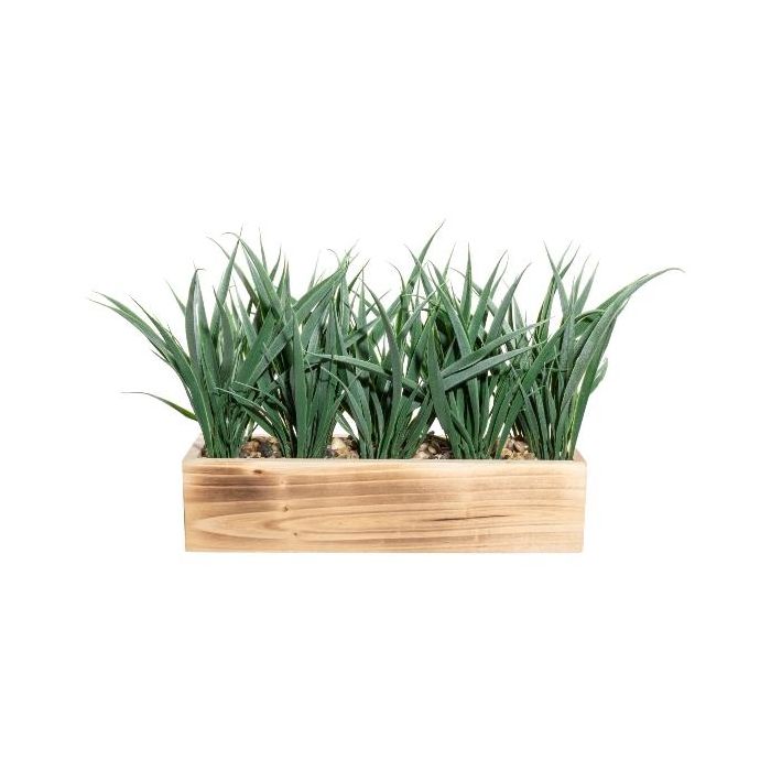 Dekorativní travní rákos WENMAL v dřevěném truhlíku, zelený, 30x9x23cm
