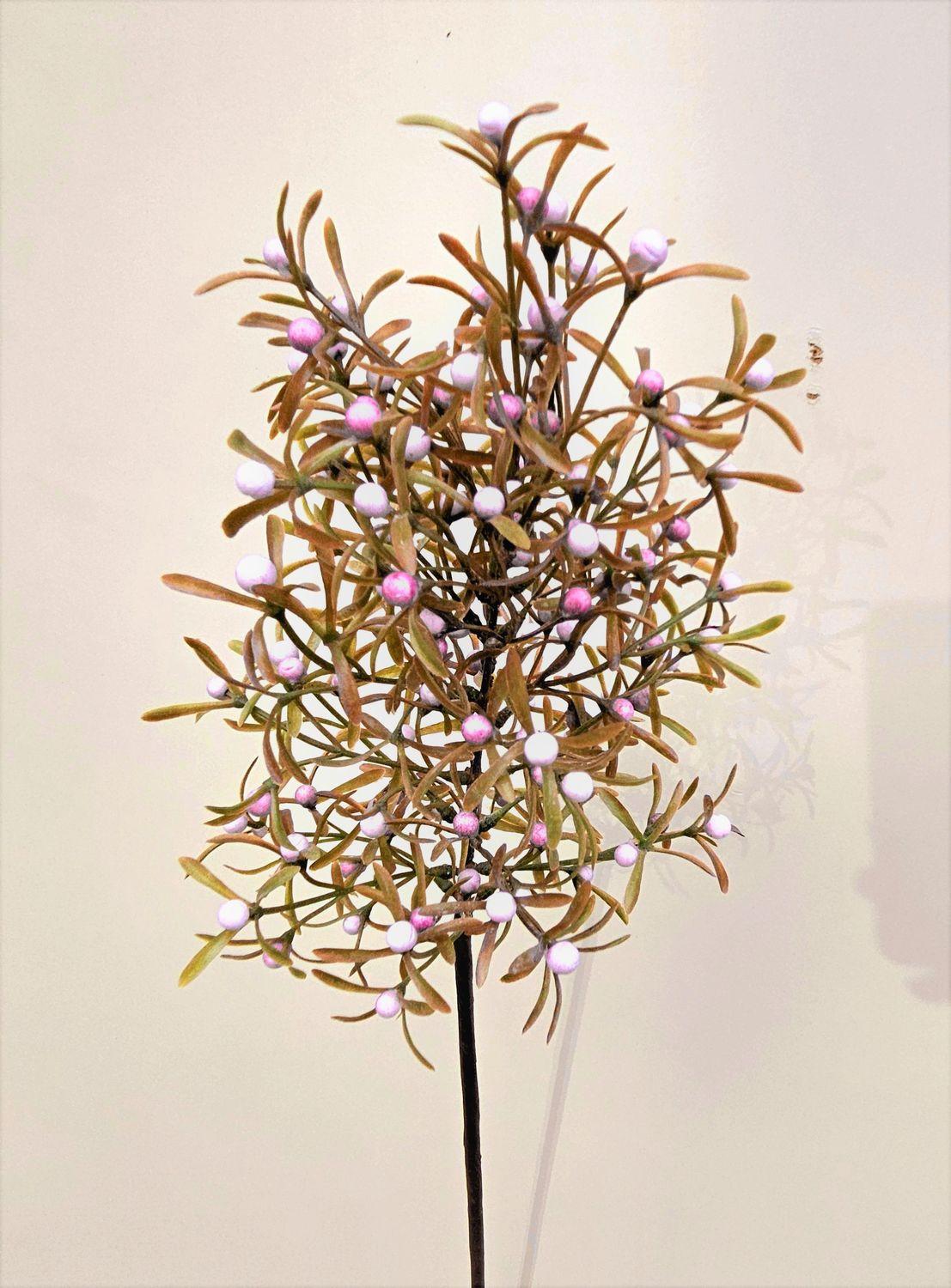 Dekorativní umělá větvička z bobulí VARDALIN s plody, zeleno-růžová, 80cm