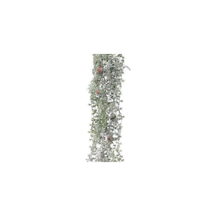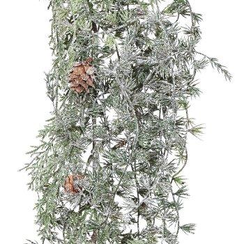 Dekorativní věnec modřín WODRI, šišky, zmrzlé, bílo-zelené, 190cm