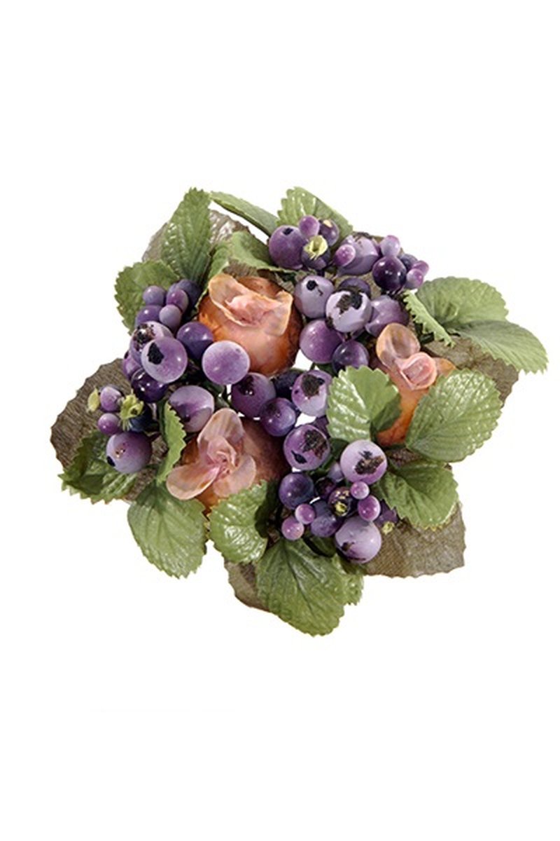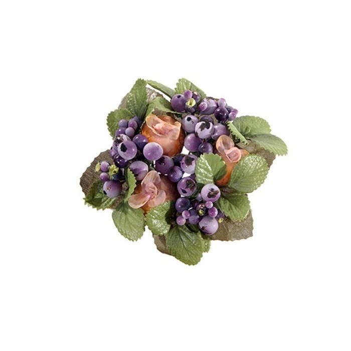 Dekorativní věnec na svíčku STELLAN se sněhovými bobulemi, poupata, fialovo-lososový, Ø10cm