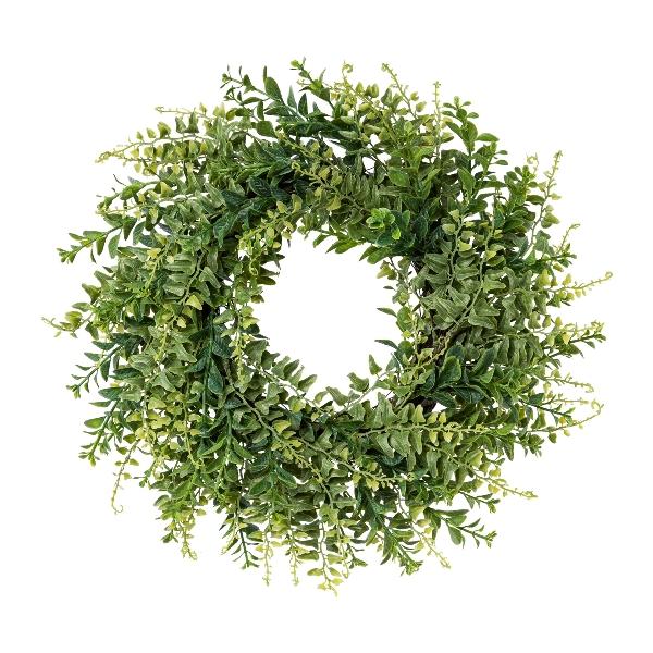 Dekorativní věnec z knoflíkového kapradí VOPLI, zelený, Ø45cm