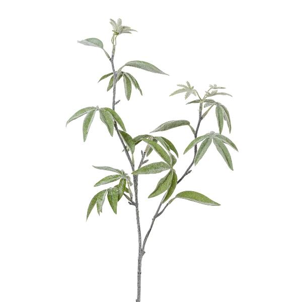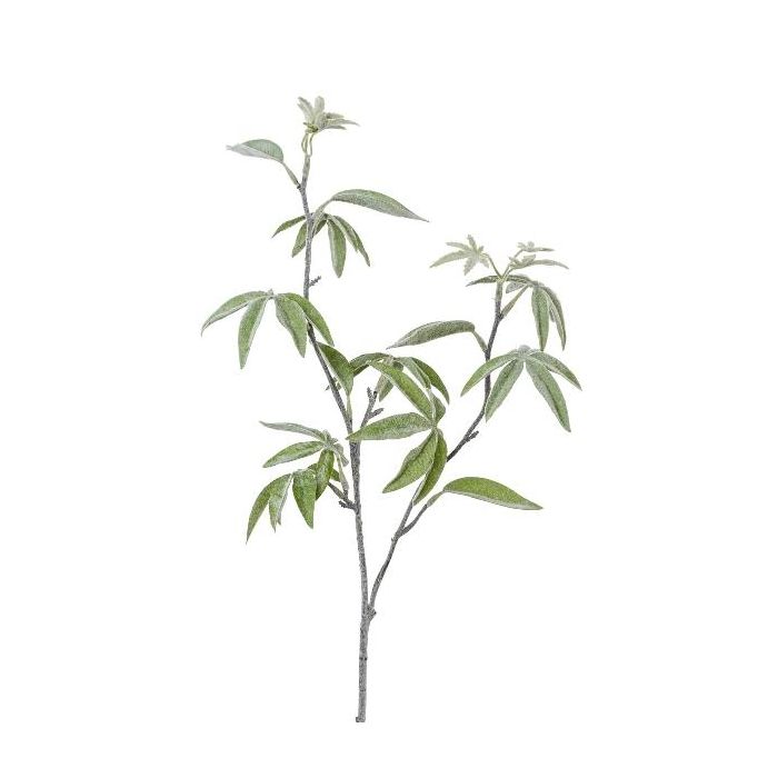 Dekorativní větev arálie prstová DREVAL, zmrzlá, bílo-zelená, 65cm
