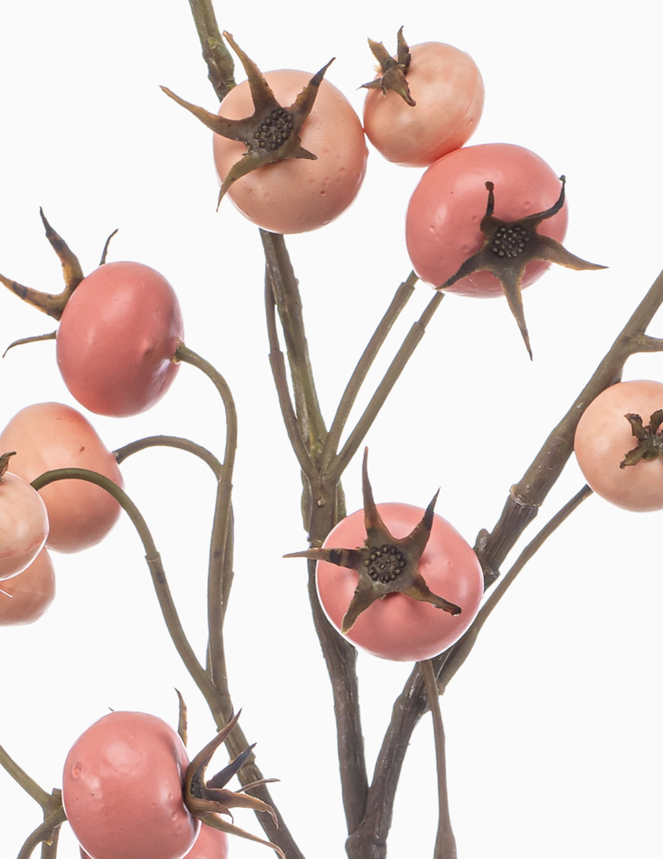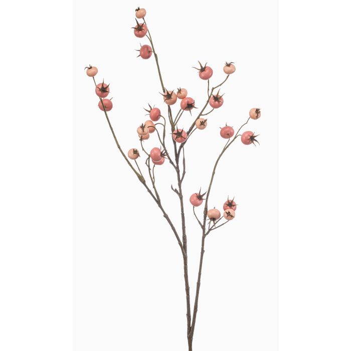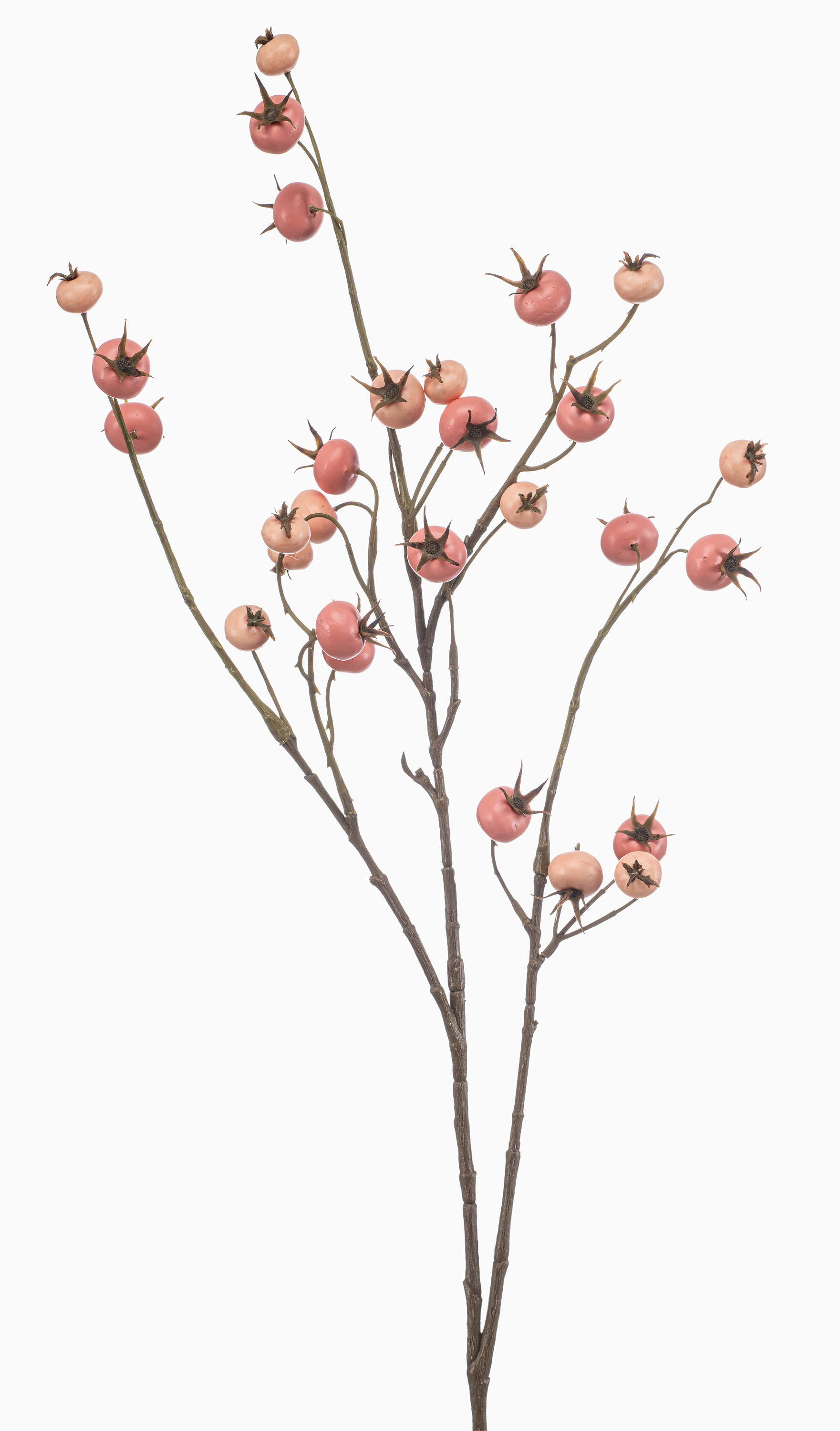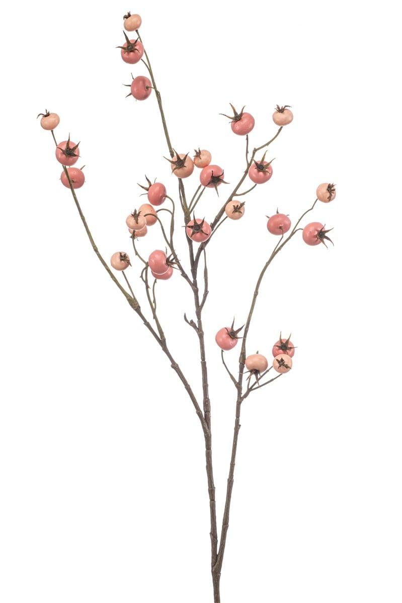 Dekorativní větev bramborové růže FRAVON se šípky, broskvově růžová, 100cm