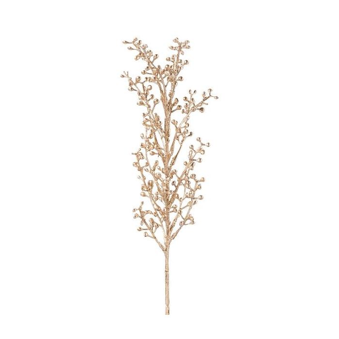 Dekorativní větev maketa bobulí BLERTO, bobule, šampaňské, 55cm