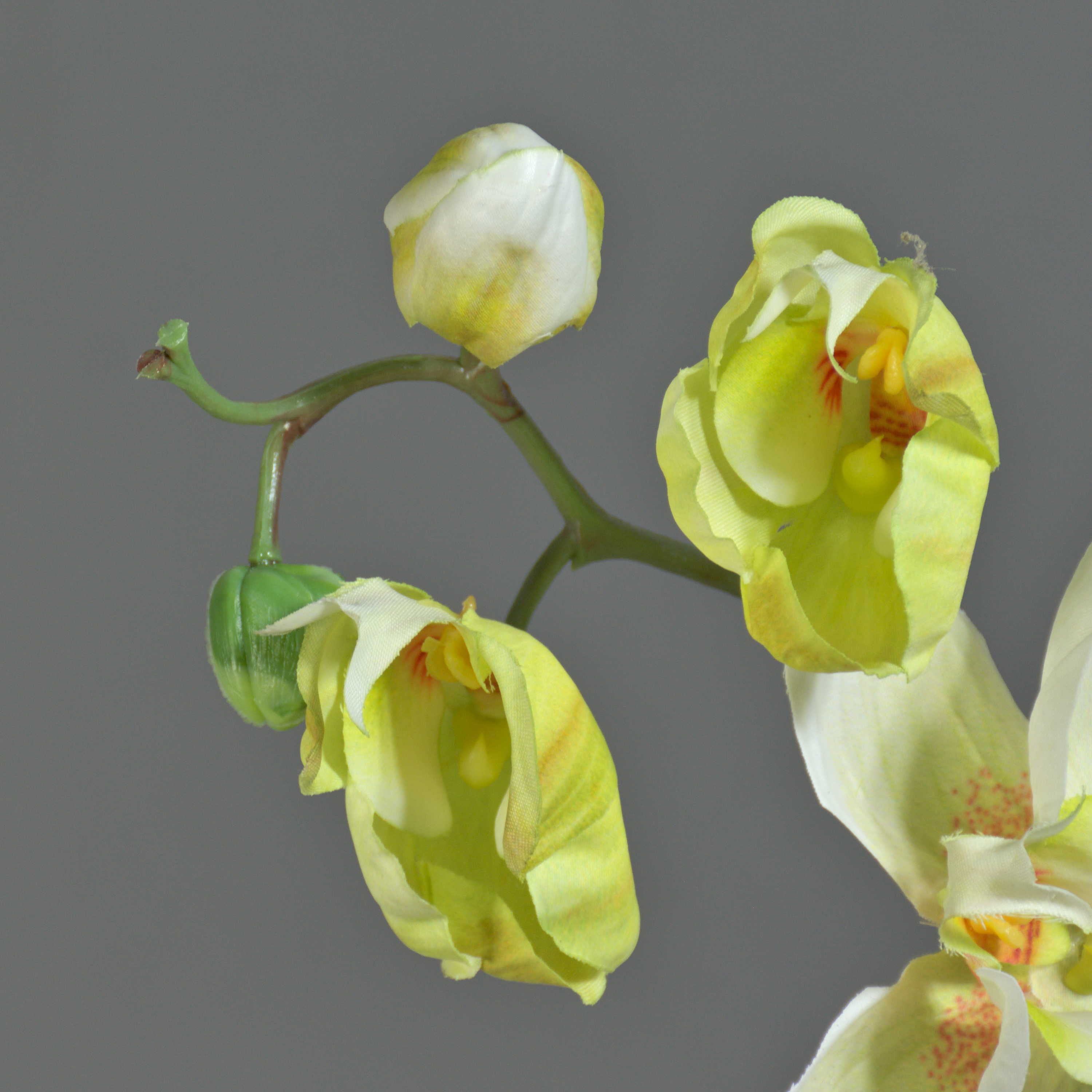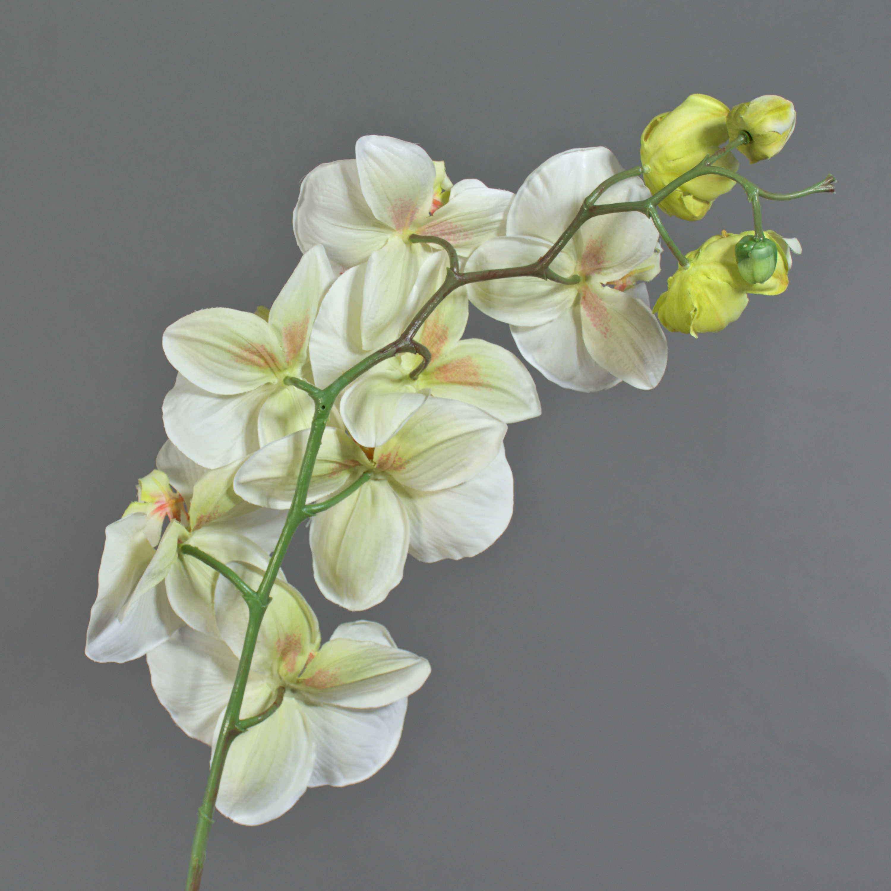 Dekorativní větev orchideje Phalaenopsis WESA, bílo-zelená, 100cm