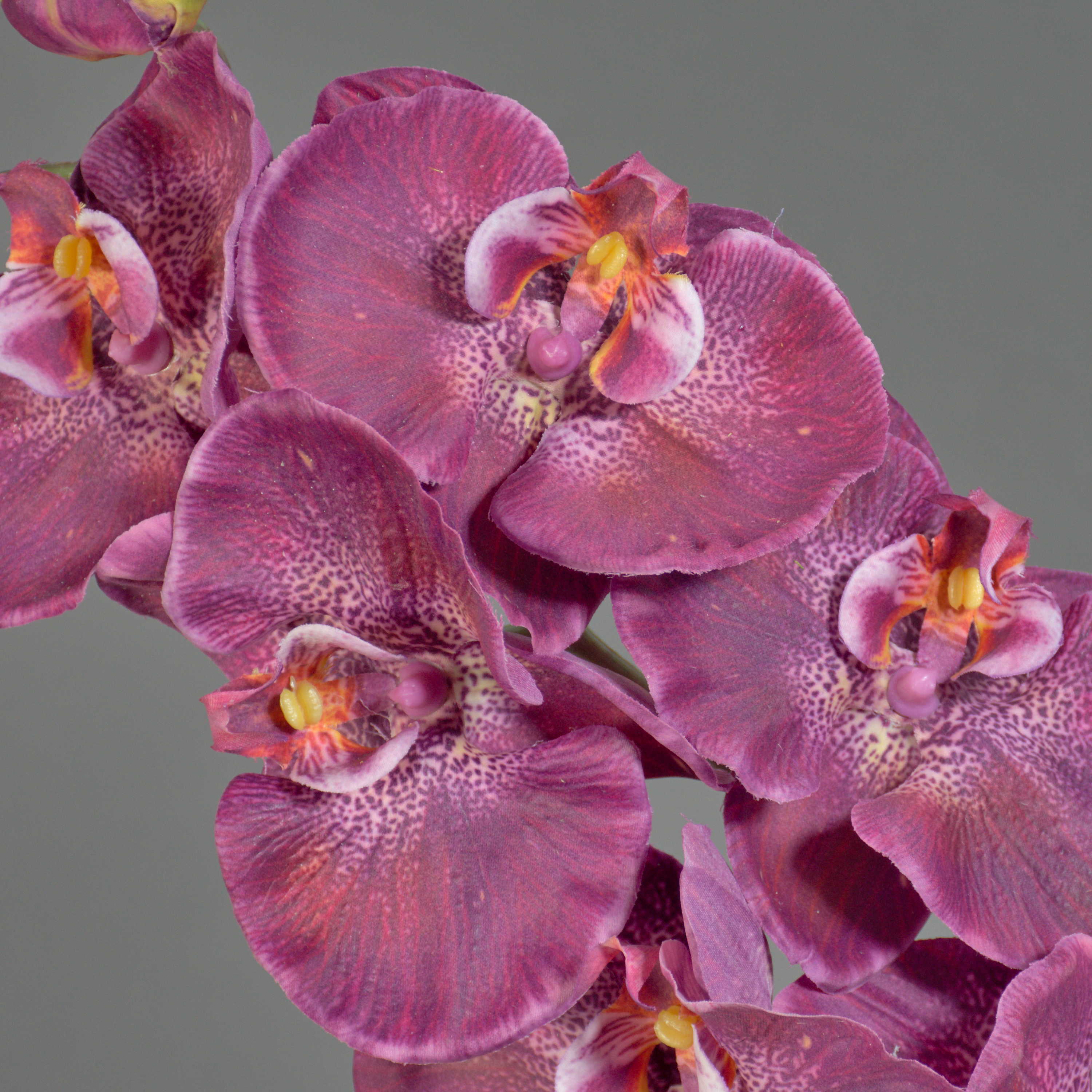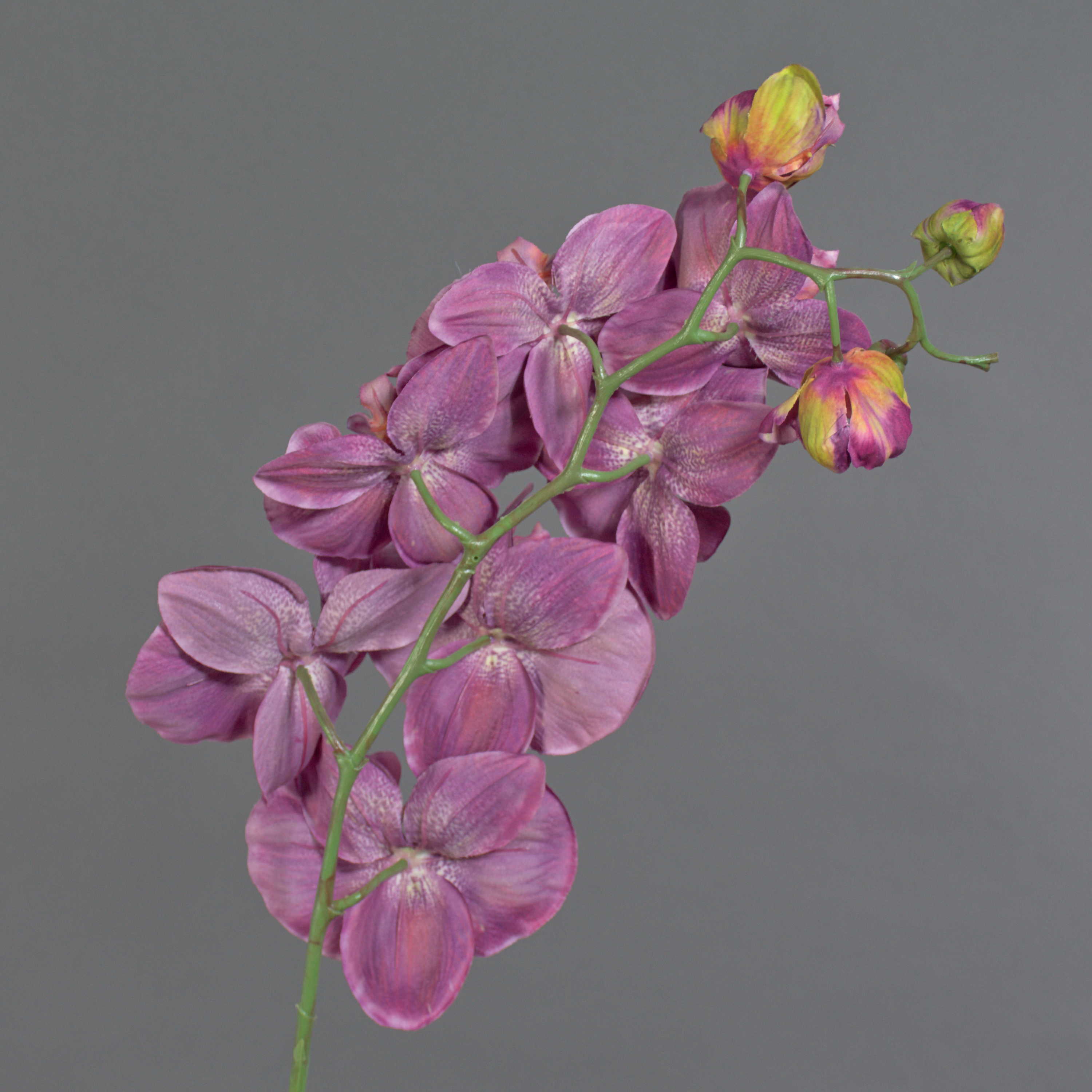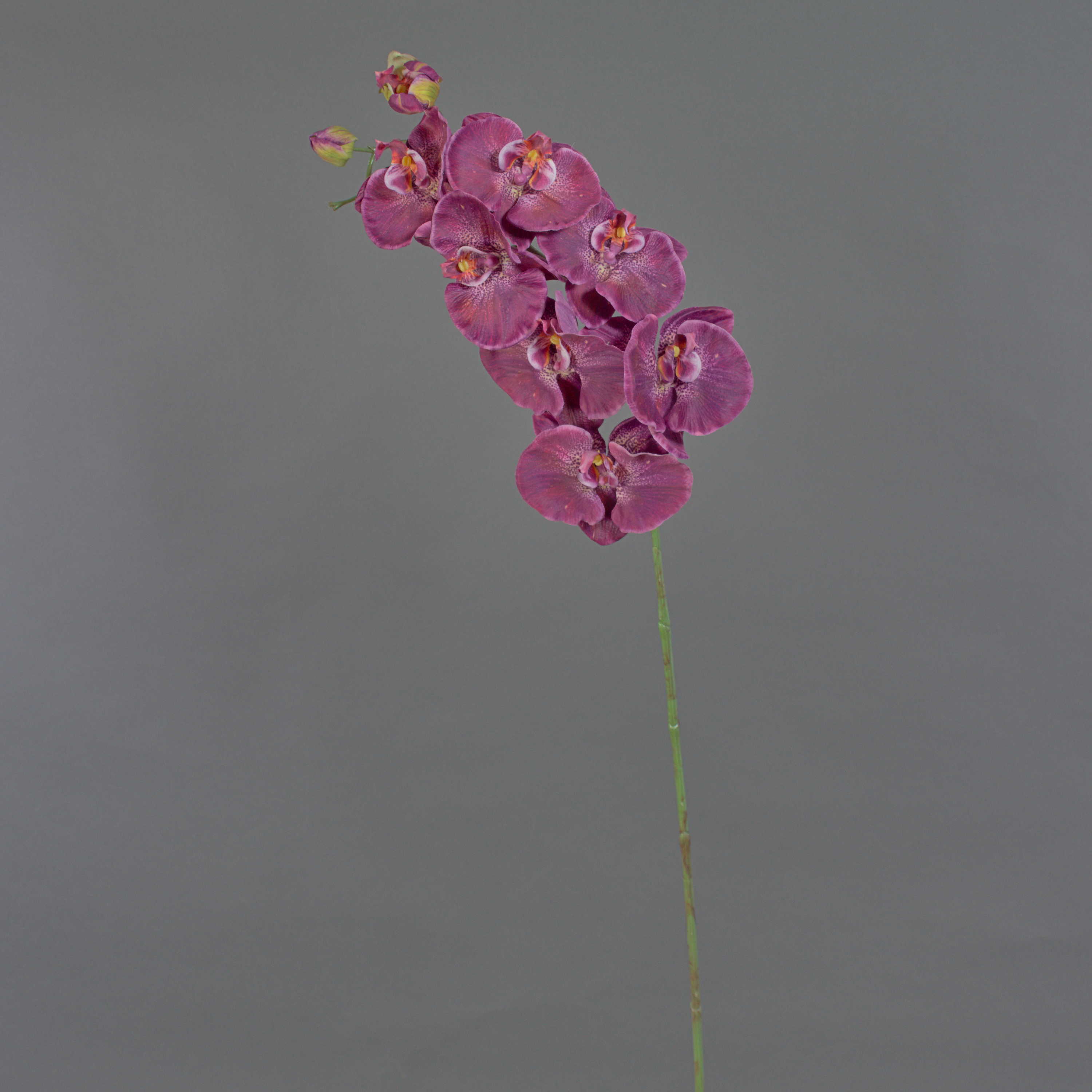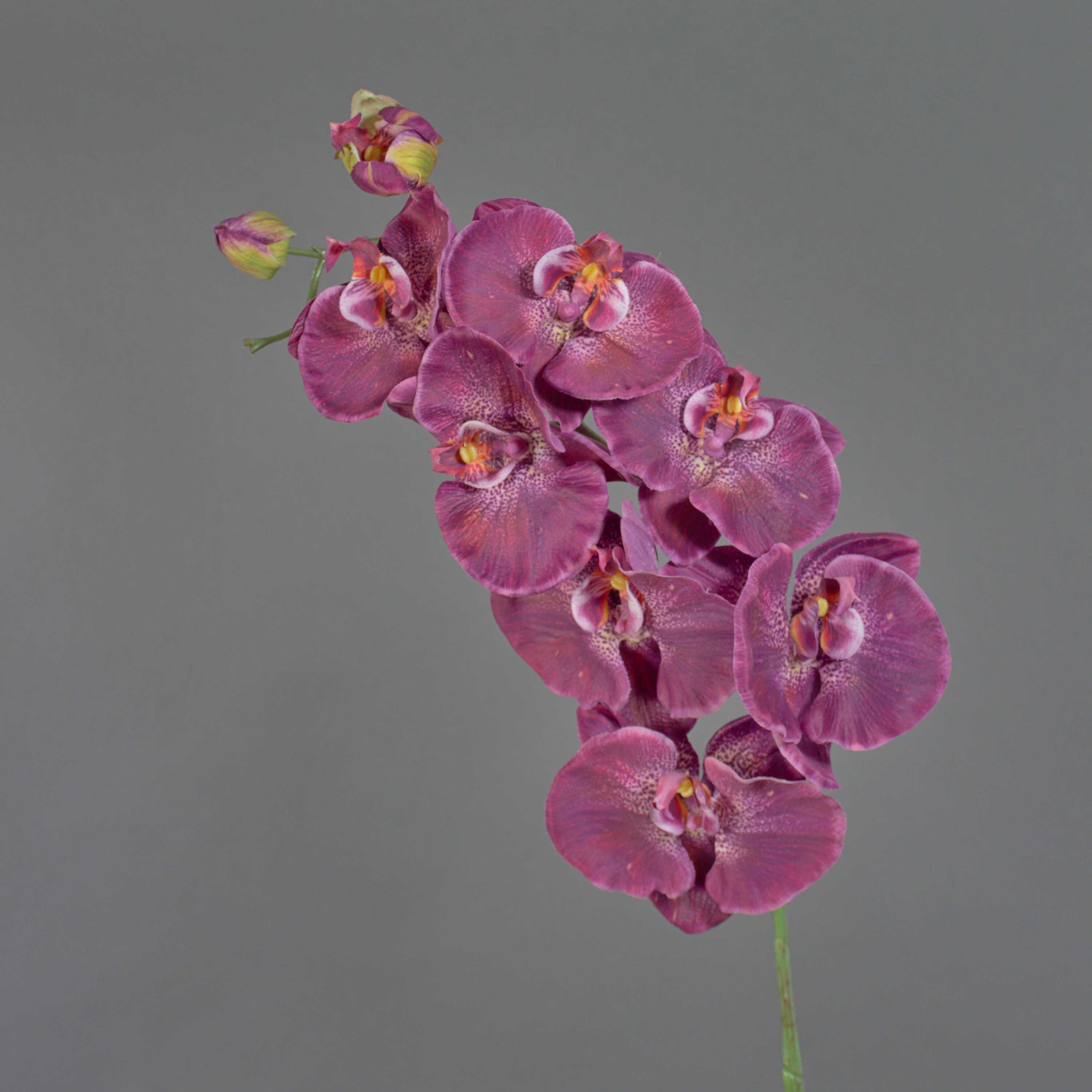 Dekorativní větev orchideje Phalaenopsis WESA, tmavě fialovo-bílá, 100cm