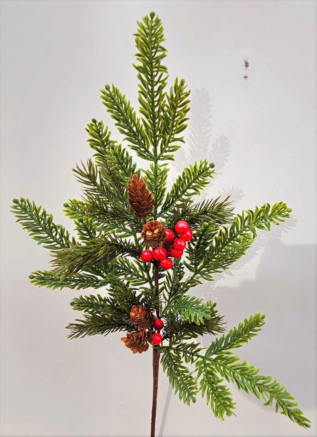 Dekorativní větev VARDALIA, jedle, bobule, šišky, červenozelená, 75cm