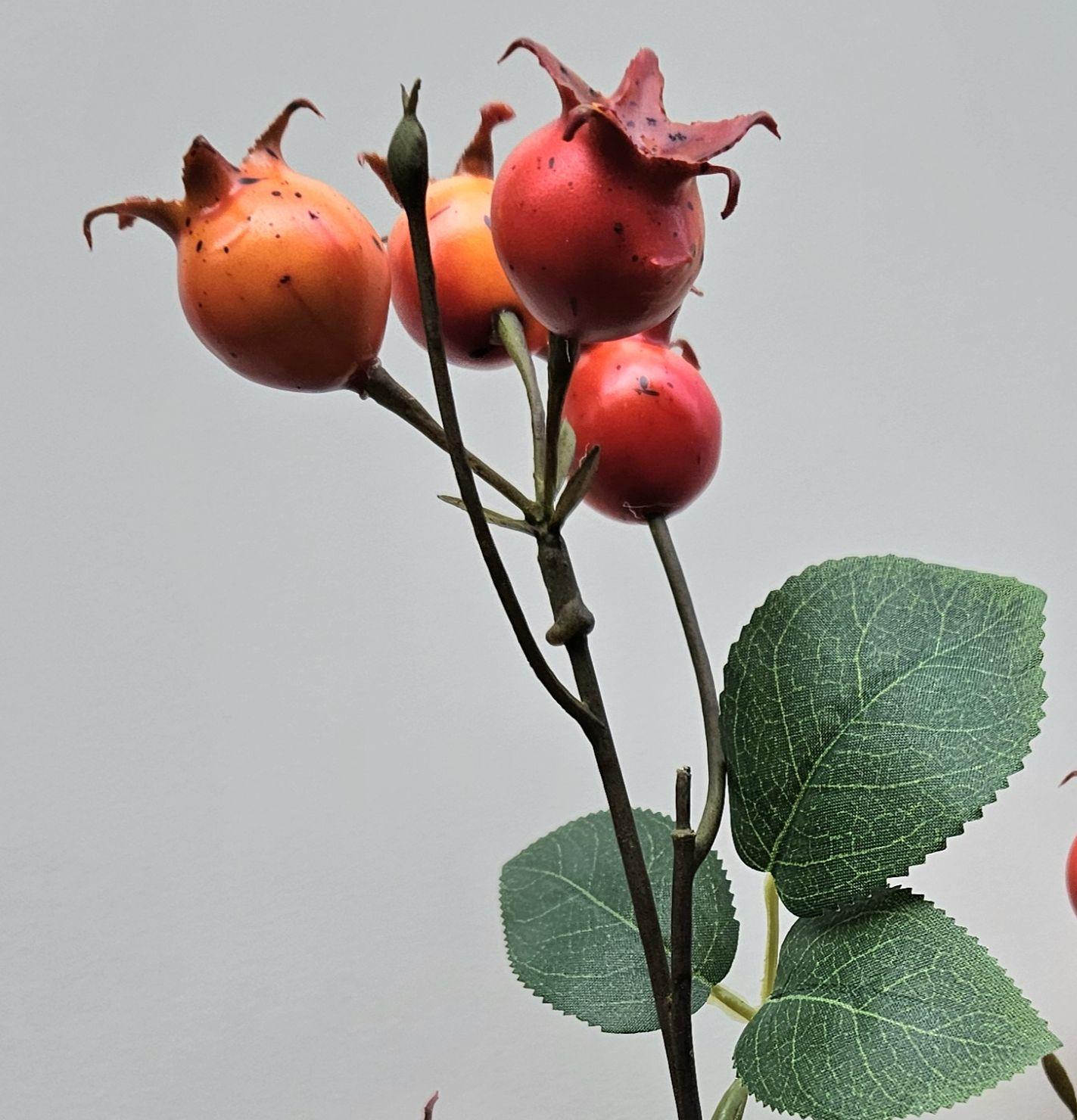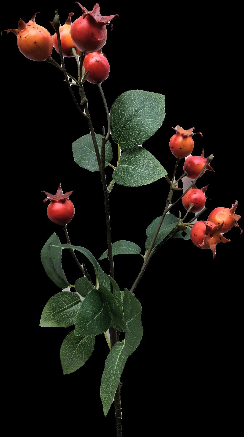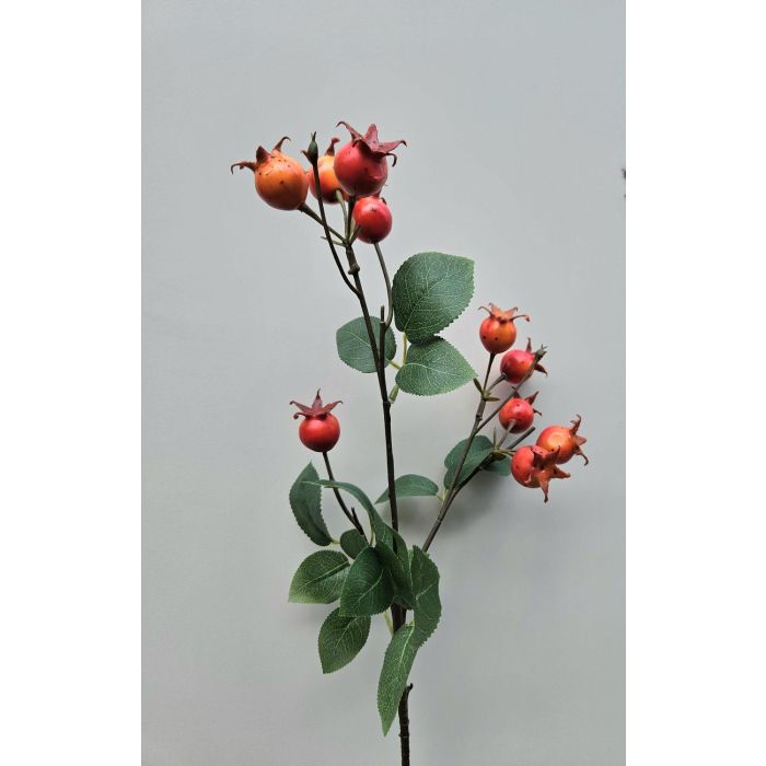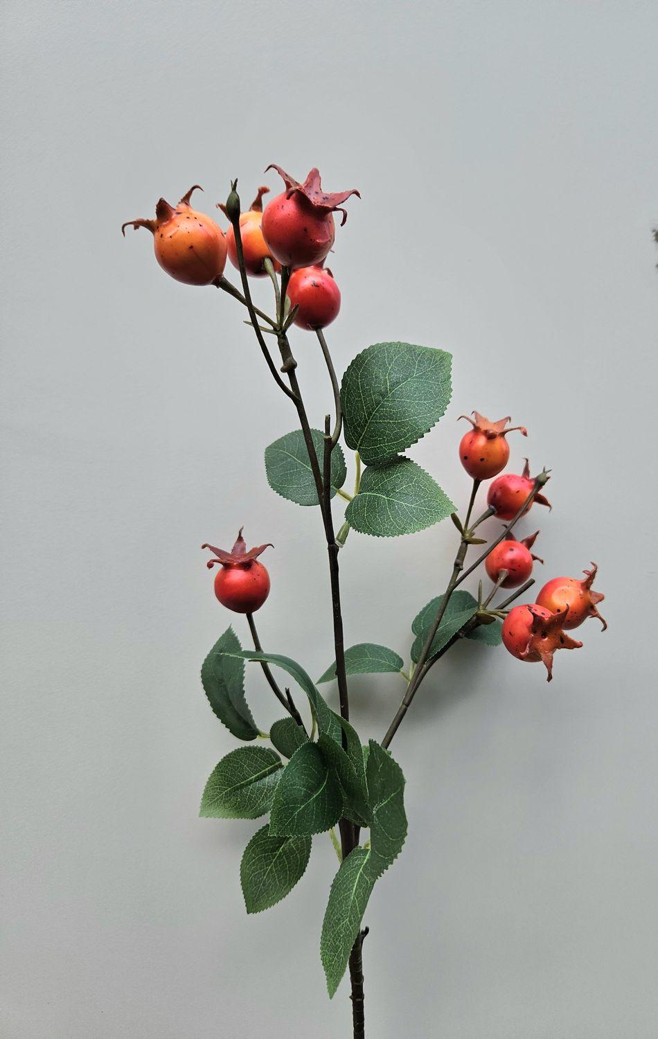 Dekorativní větvička bramborové růže LOPUNY s šípky, oranžová, 70cm