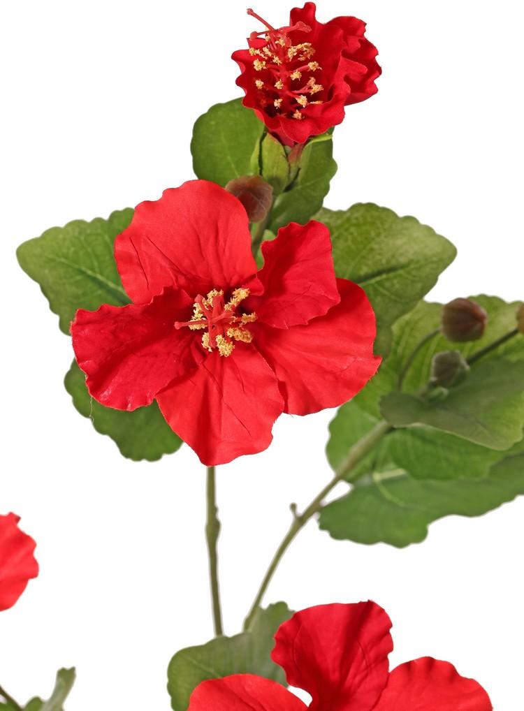 Dekorativní větvička ibišku TELSIMA s květy, červená, 80cm