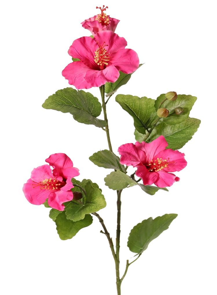 Dekorativní větvička ibišku TELSIMA s květy, růžová, 80cm
