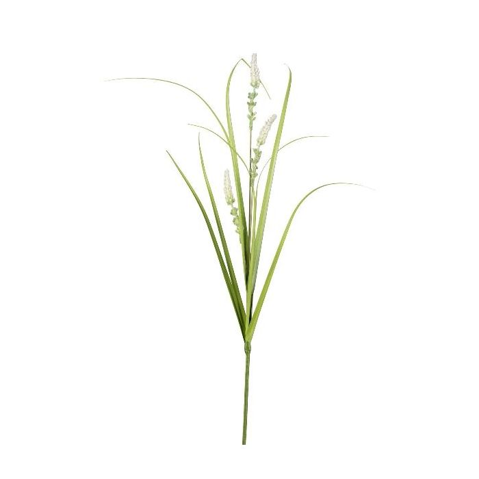 Dekorativní větvička lampového čističe trávy KOVLIN s laty, krémově zelená, 65cm