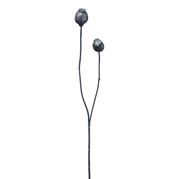 Dekorativní větvička makových tobolek ORIONLA, tmavě modrá, 65cm