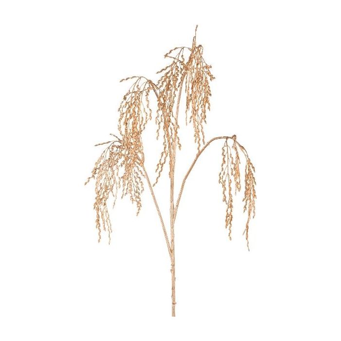 Dekorativní větvička prosa čiroku XILVEN s klasy, závěsná, zlatá, 110cm