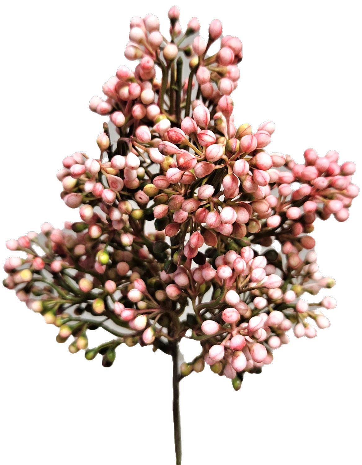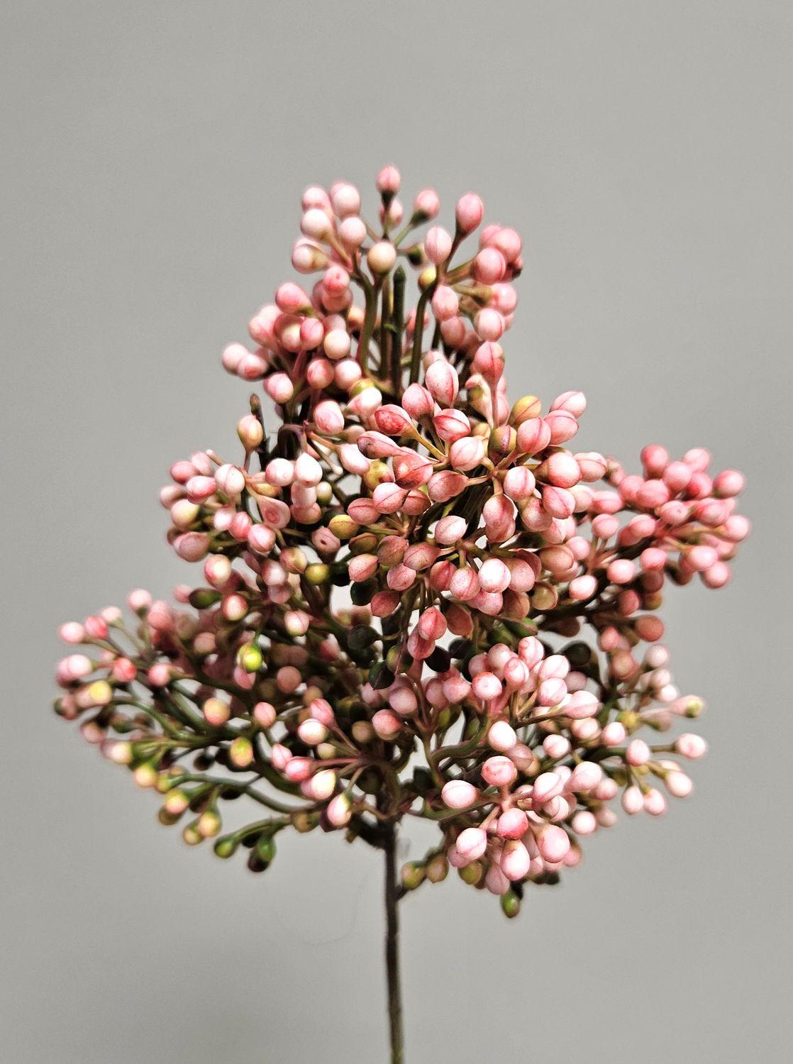 Dekorativní větvička sněhová koule MARMYN s bobulemi, světle růžová, 35cm