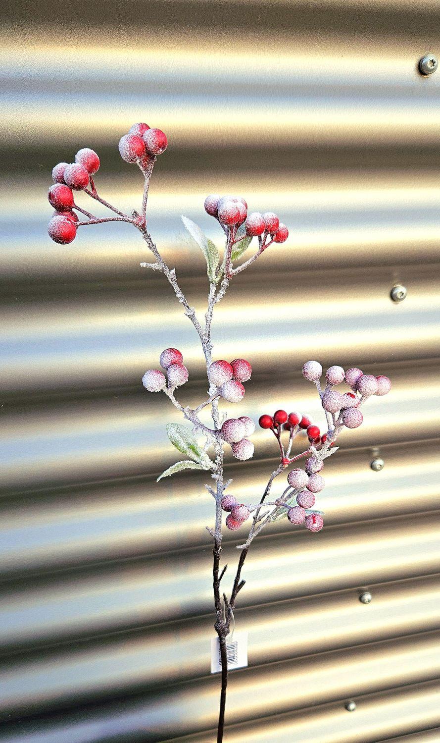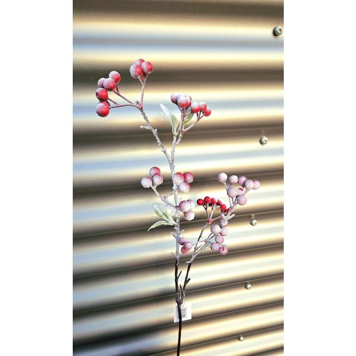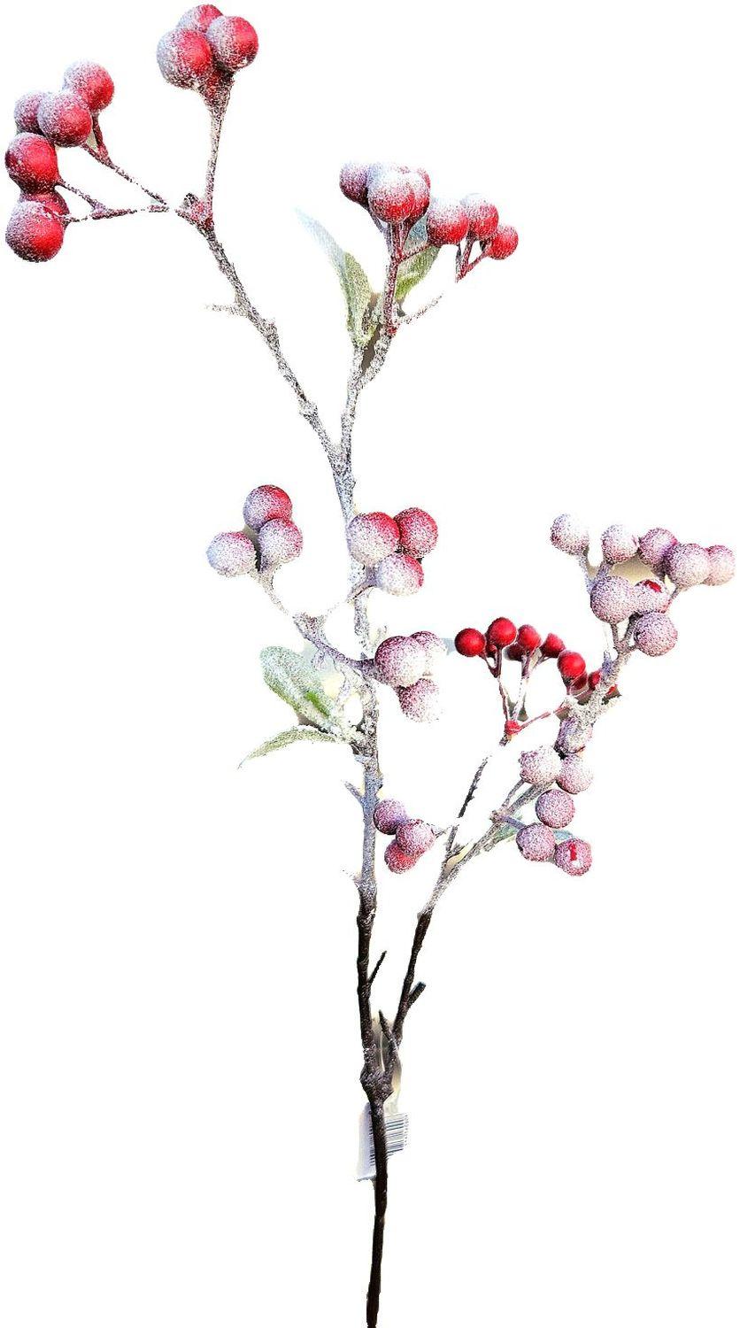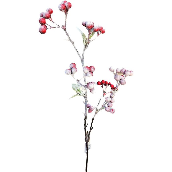 Dekorativní větvička sněženka SOPUNY, bobule, zasněžená, červená a bílá, 70cm