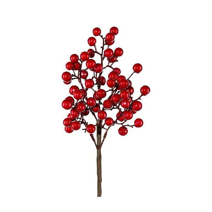 Dekorativní větvička sněženky VROSTI, bobule, červená, 35cm