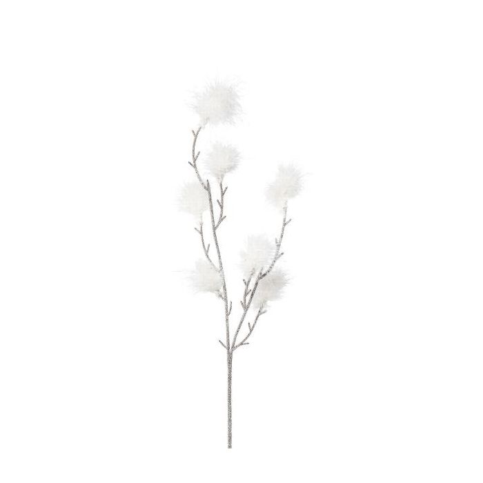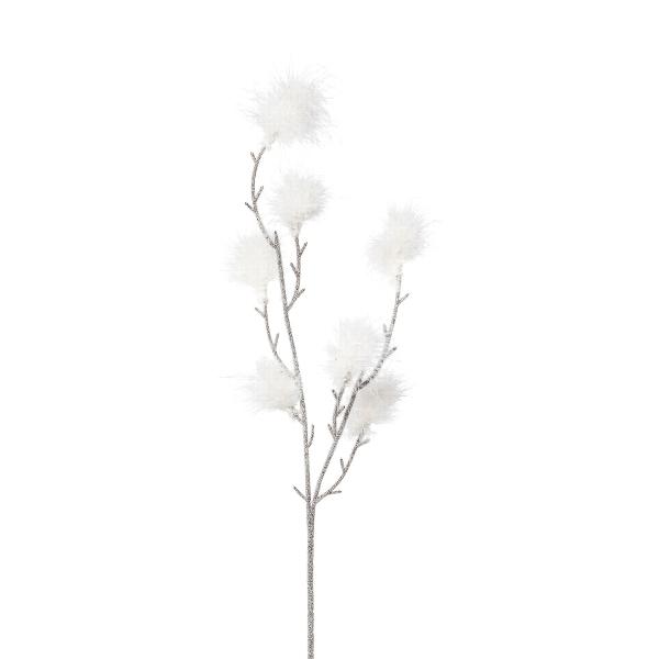 Dekorativní větvička z péřového keře SMORKE s květy, bílá, 75cm