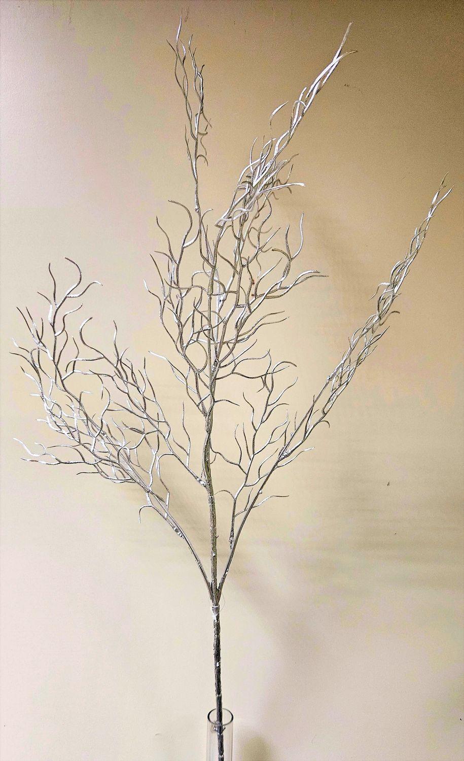 Dekorativní vrbová větvička DONATELLA, stříbrná, 95cm