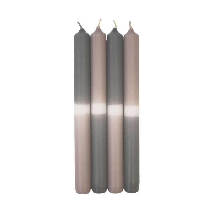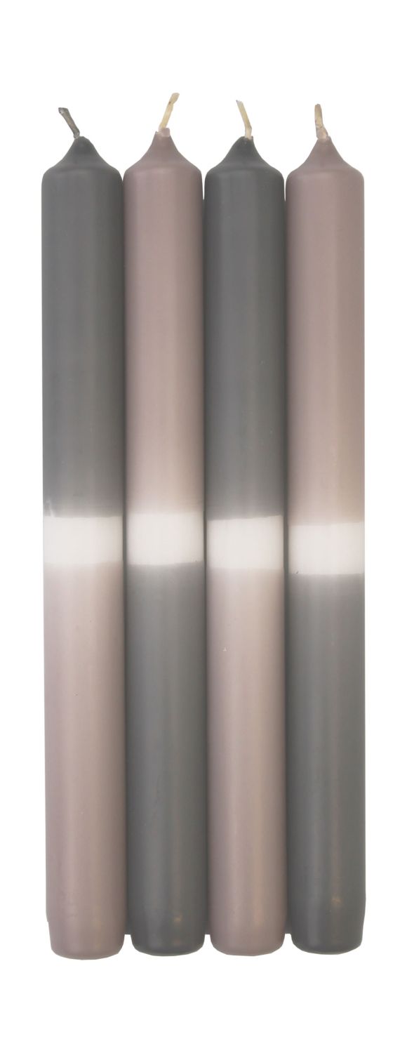 Dip dye tyčinkové svíčky LISSITA, 4 kusy, šedostříbrno-šedá, 25cm, Ø2,3cm, 11h
