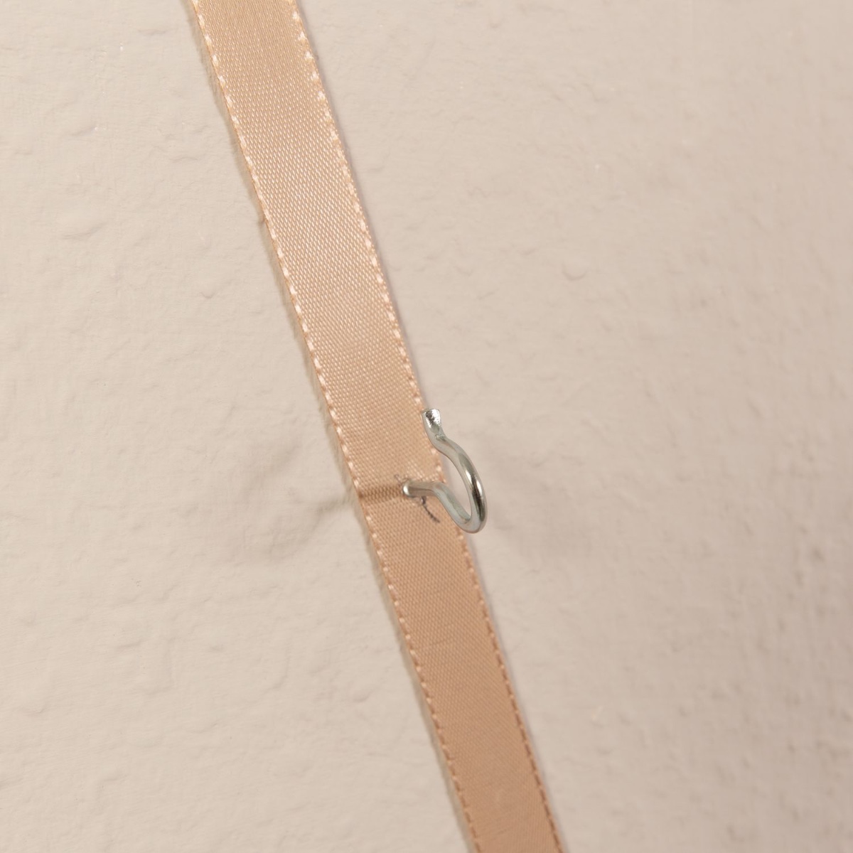 1. Nejprve omotejte saténovou stuhu kolem koule, pevně ji uvažte a připevněte 2–3 sponkami nebo špendlíky. Konce saténové stuhy by měly zůstat dlouhé alespoň 40 cm, protože později poslouží jako závěsy.