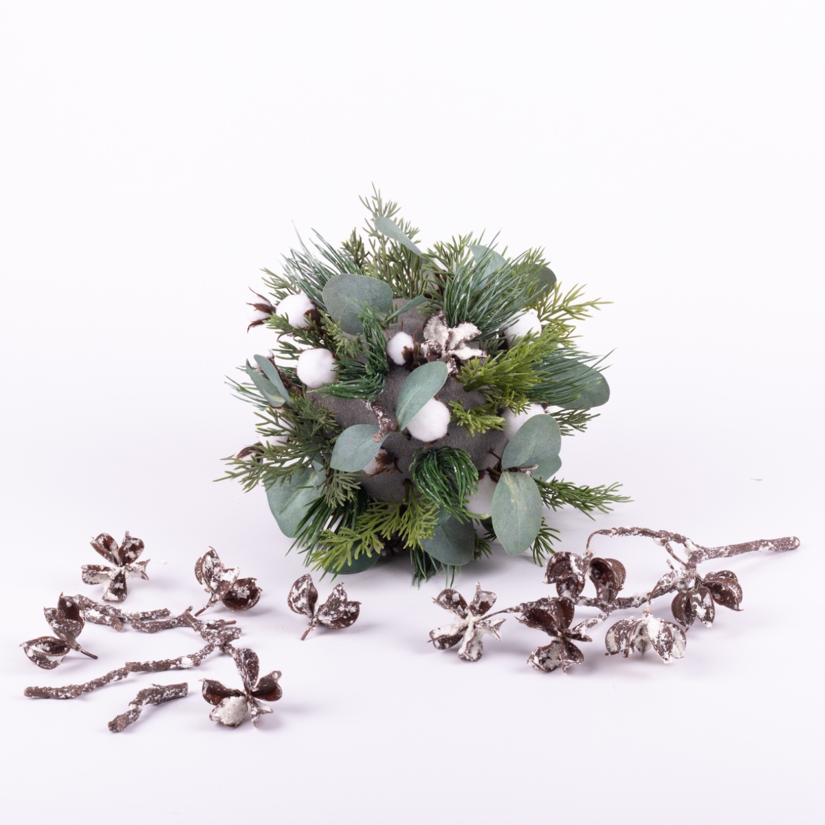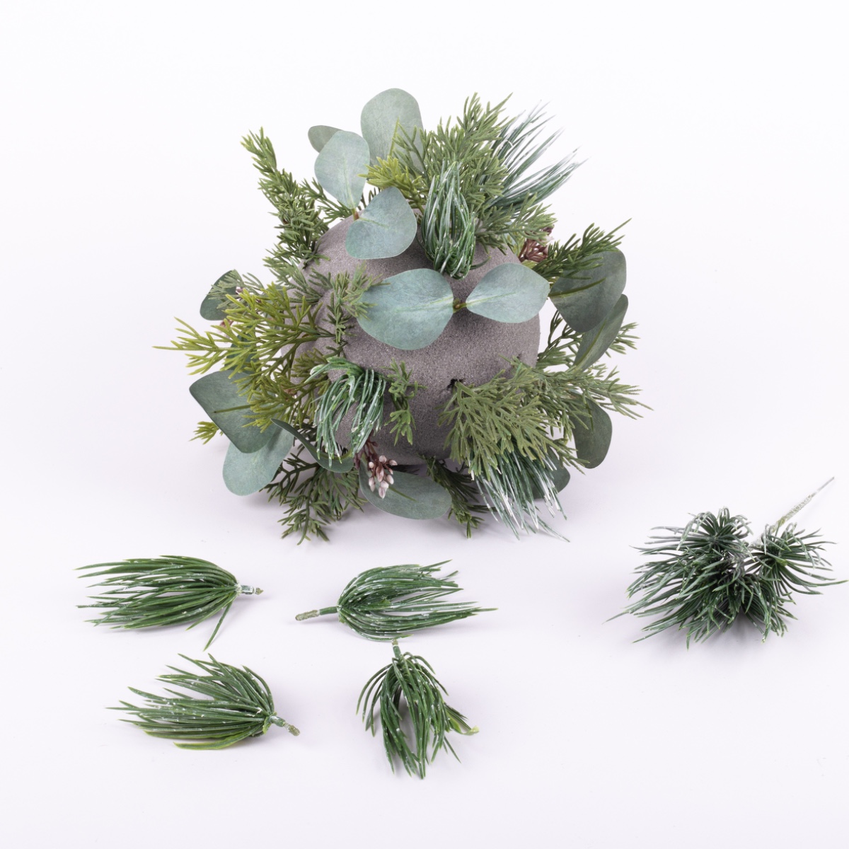 2. Oddělte malé větvičky jednotlivých větví od velkého stonku pomocí kleští. Poté malé větvičky jednoduše zapíchněte do koule. Dbejte na rovnoměrné rozložení.