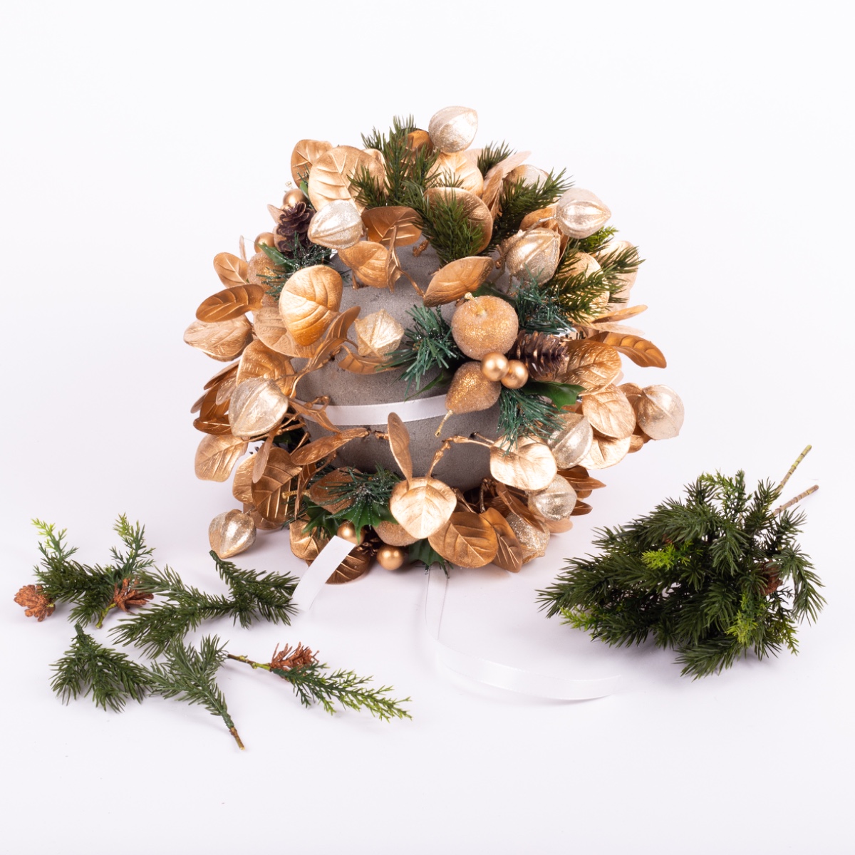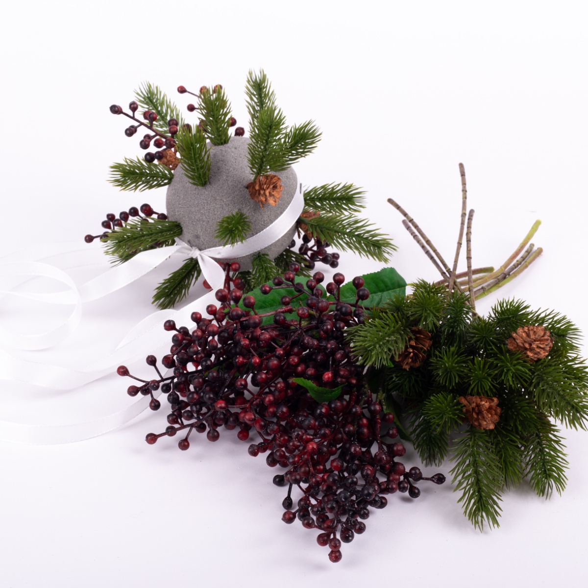 Důležité je, aby na konci bylo co nejméně vidět fixační hmotu. K tomu se zvláště dobře hodí jehličnaté větvičky.