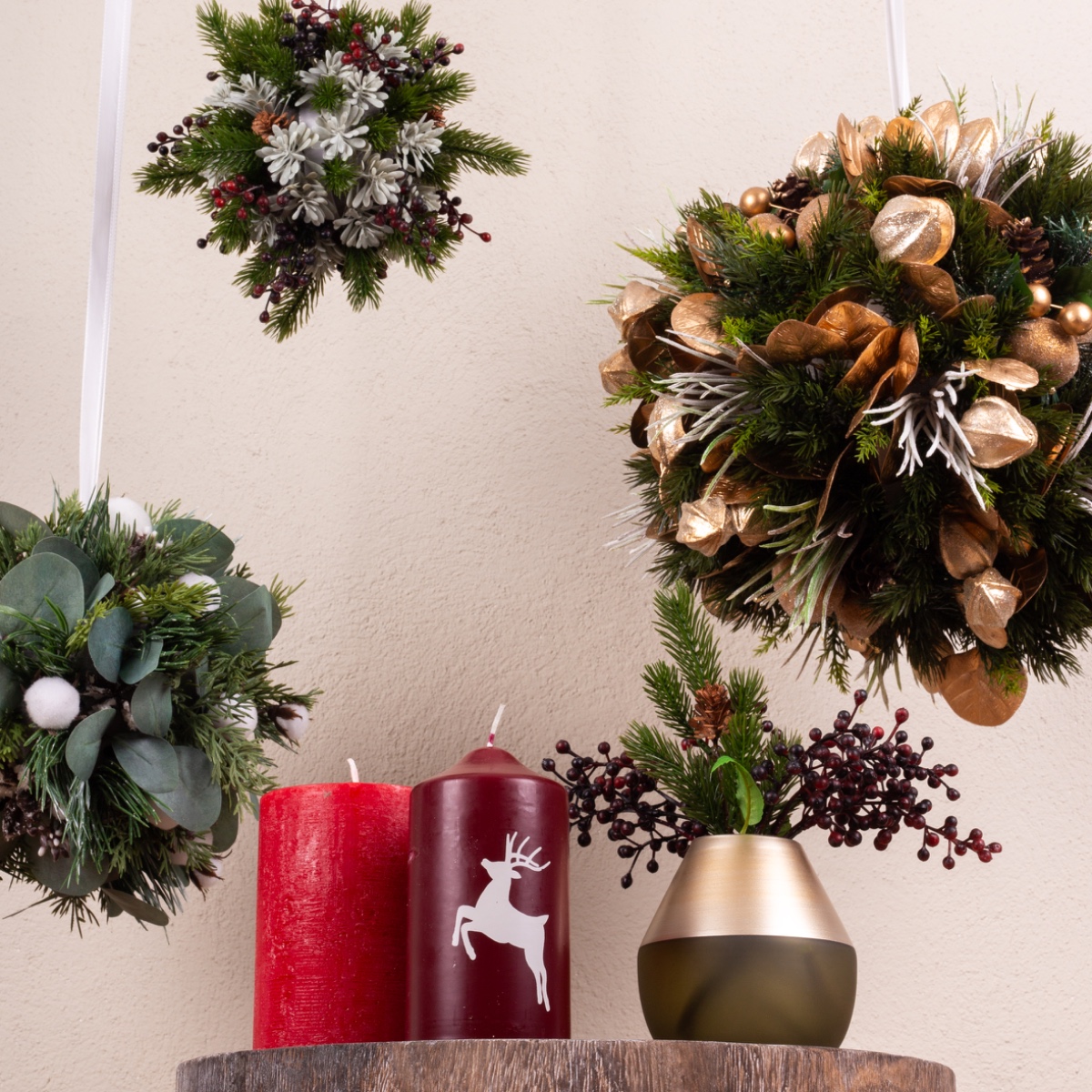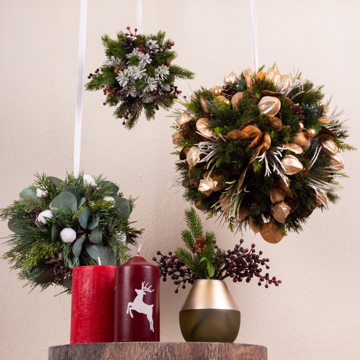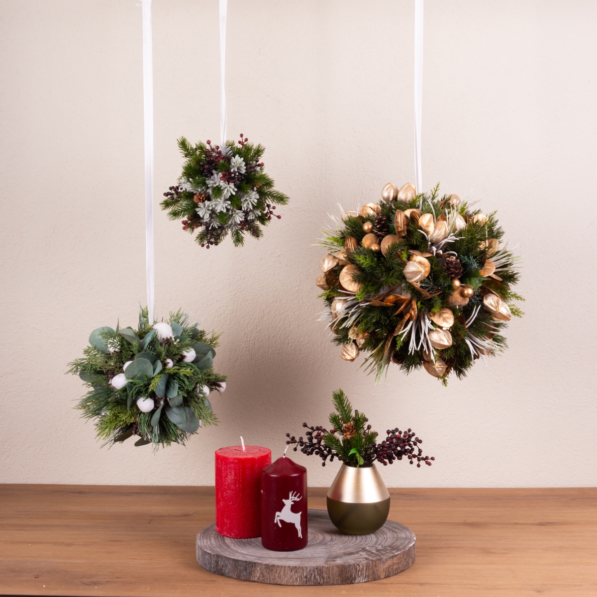 Zelené a vánoční! Vánoční vzhled, který přichází shora. Naše koule ze modelovací hmoty jsou k tomu ideální. Navrhli jsme 3 různé koule ve třech různých velikostech. Každá koule je malým uměleckým dílem, na kterém lze rozpoznat mnoho různých detailů. Vaší kreativitě se zde nekladou žádné meze, protože je zcela jedno, čím koule ozdobíte. Malé větvičky se jednoduše zapíchnou do pěnové hmoty. To člověka opravdu motivuje k tvoření. Kupte si tento vzhled!