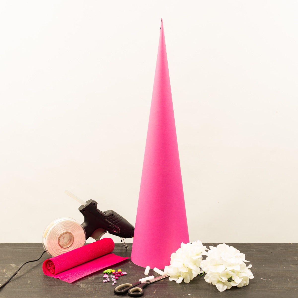 Další potřebný materiál: prázdná školní taška, tekuté lepidlo, krepový papír a dřevěné korálky