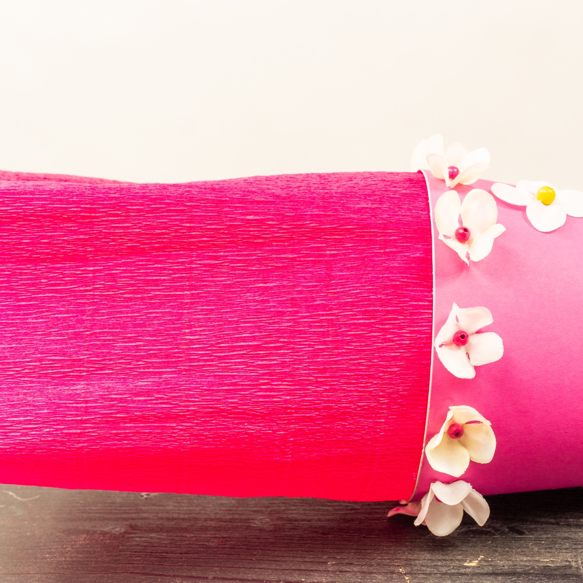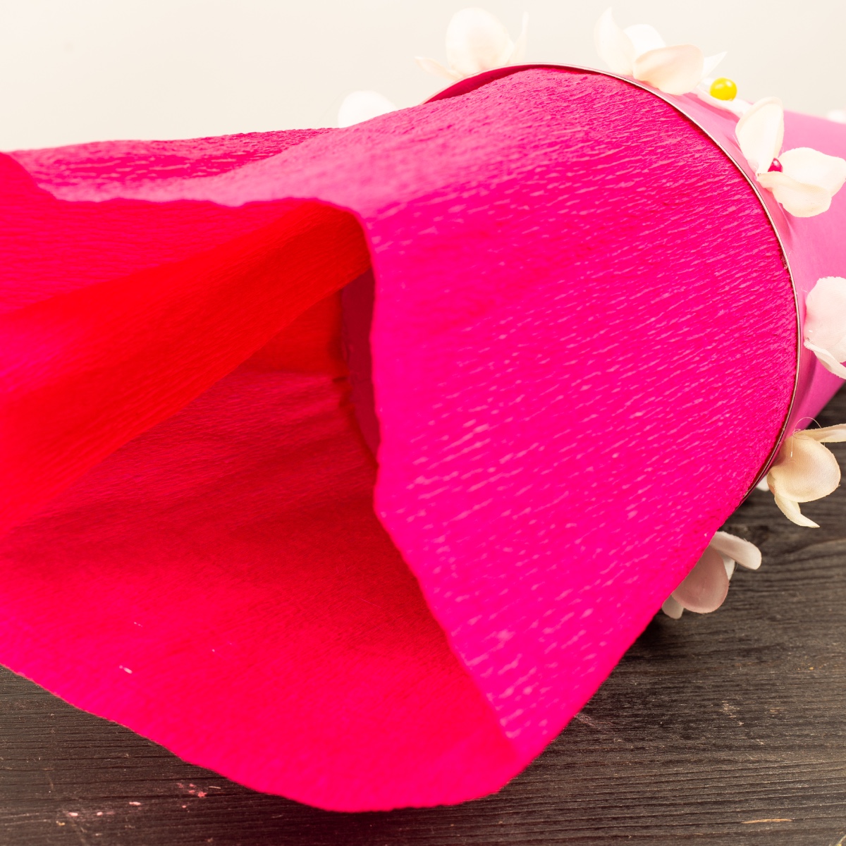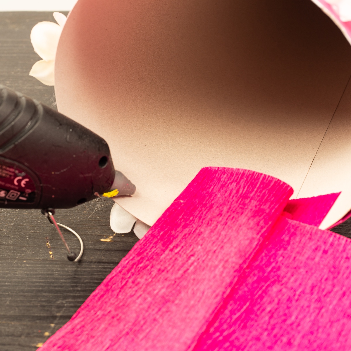 4. Krepový papír přilepte dovnitř školní tašky. Nechte ho trochu přesahovat, aby později nevypadl obsah.