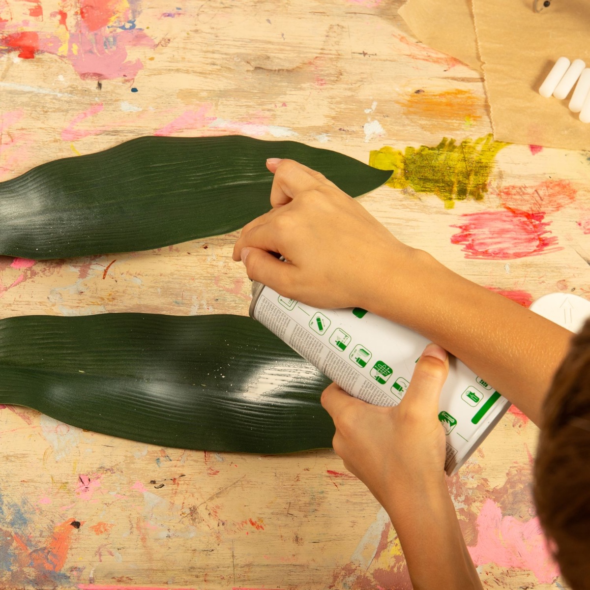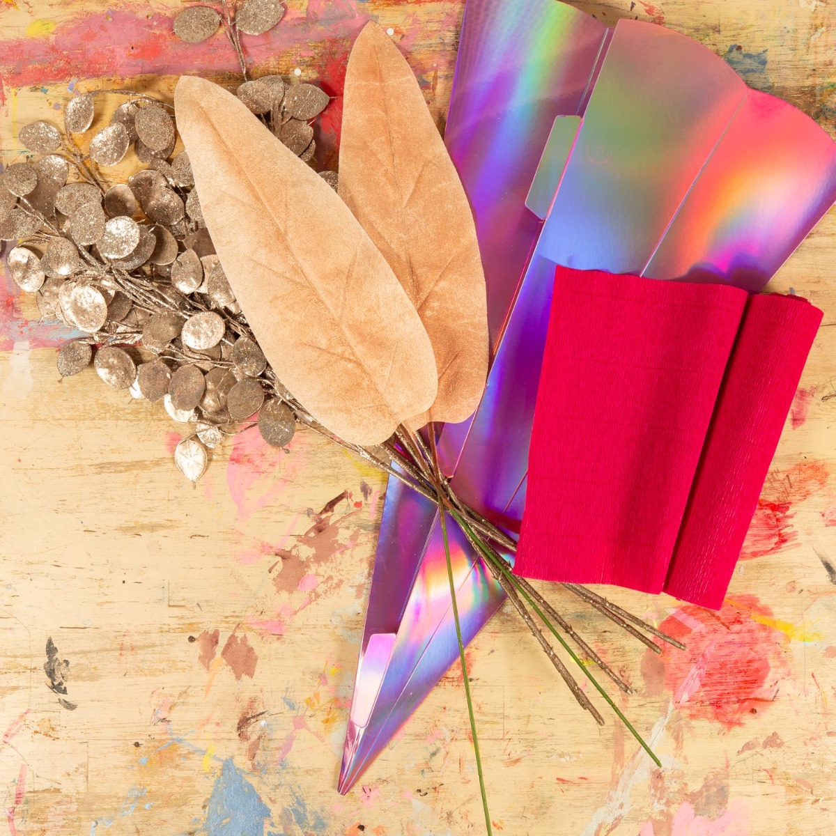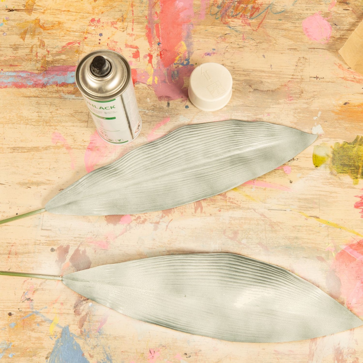1. Oddělte velké listy od stonku, obarvěte je požadovanou barvou a nechte zaschnout.