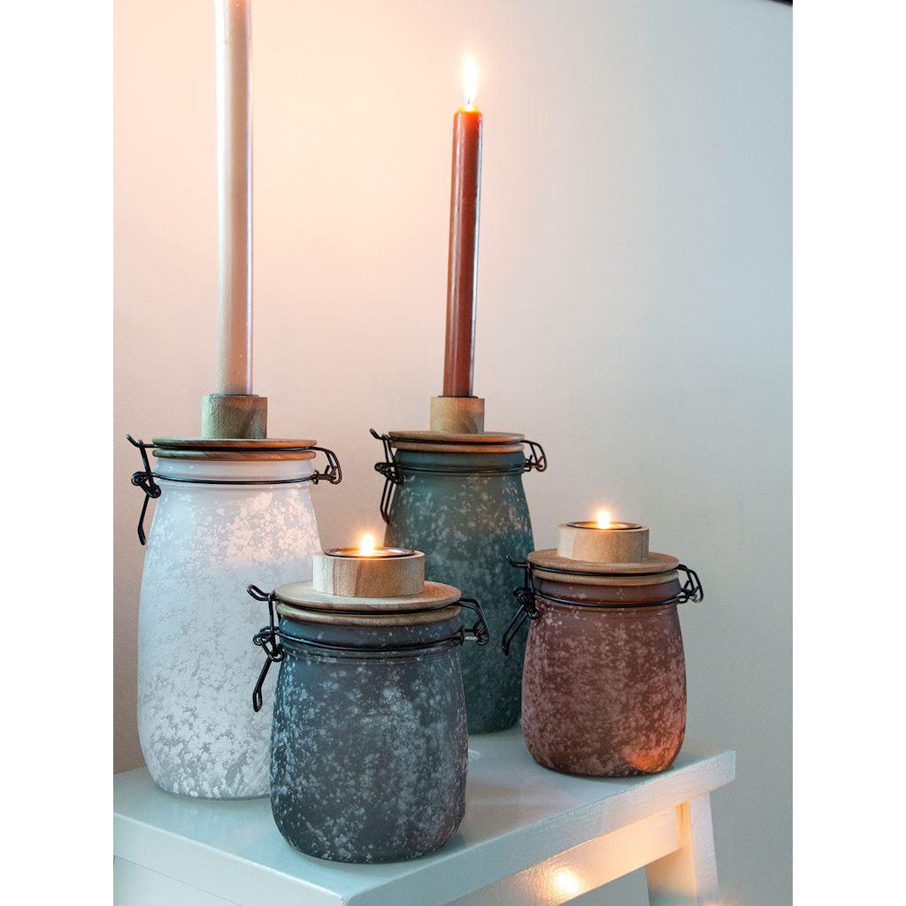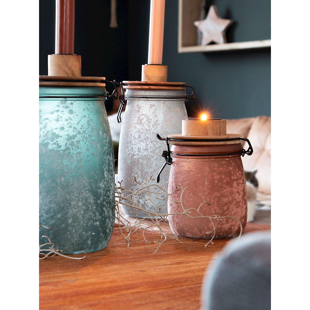 Drátěná nádoba ANNEDORE s držákem na čajovou svíčku, vzhled frost, jantar, 15,5cm, Ø10,5cm