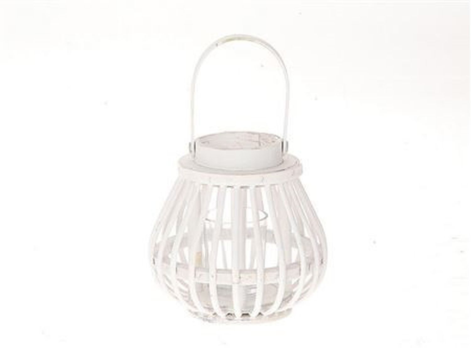 Dřevěná lucerna CHARITHRA s držadlem, skleněná vložka, bílá, 15cm, Ø15,5cm