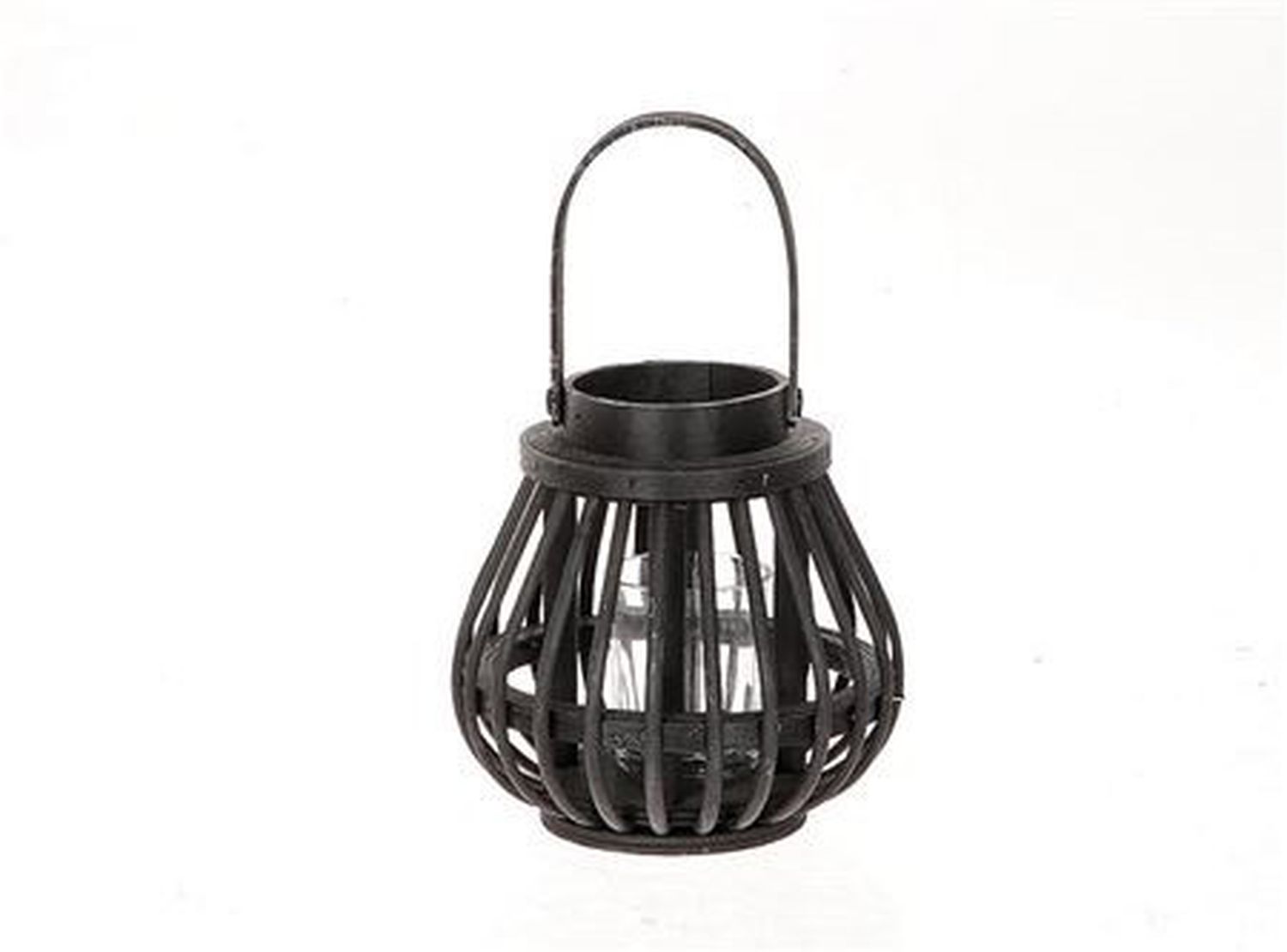 Dřevěná lucerna CHARITHRA s uchem, skleněná vložka, černá, 15cm, Ø15,5cm