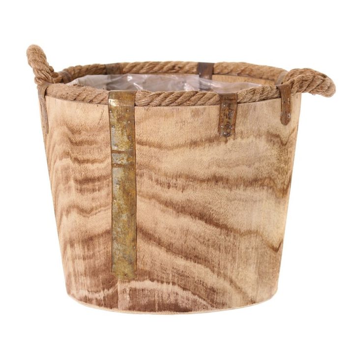 Dřevěný květináč DABIH s lanovými uchyty, hnědý, 24cm, Ø29cm