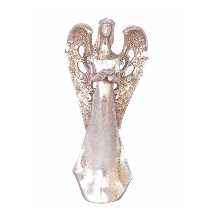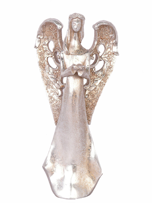 Figurka anděla PINTA, podávající květiny, stříbrno-měděná, 30cm