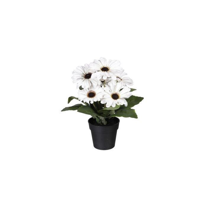 Gerbera KROLVEN umělá květina v dekorativním květináči černá, krémová, 27cm