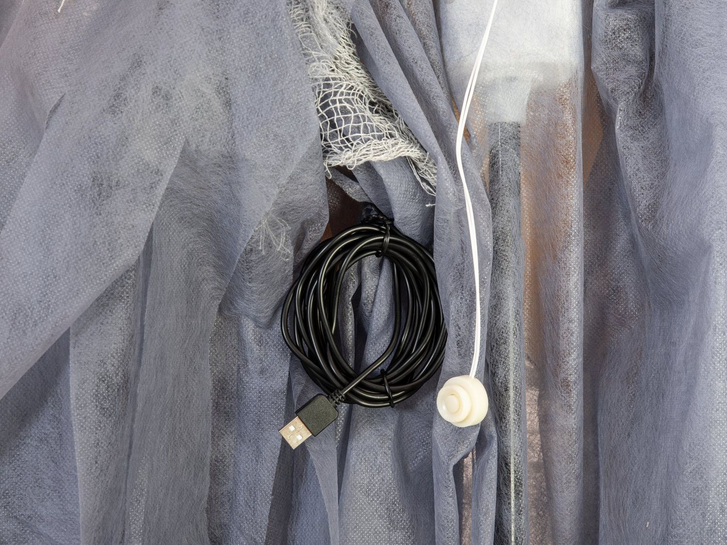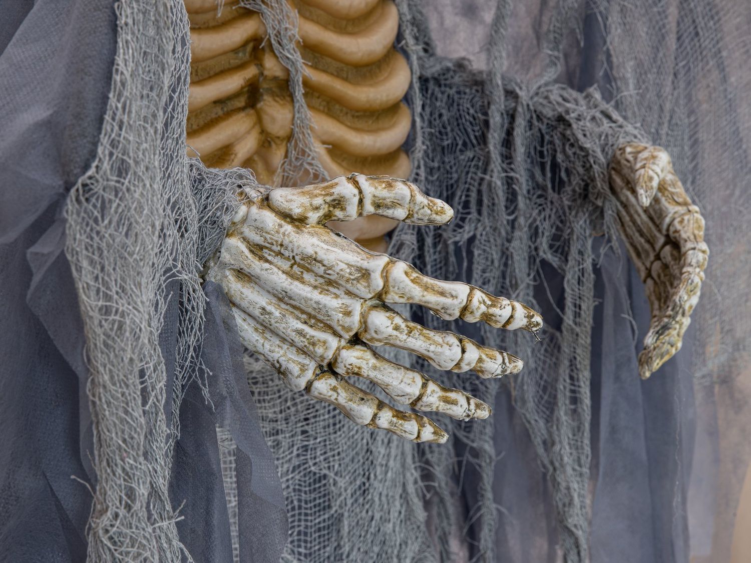Halloween kostra anděla smrti HALDOR s křídly, funkce pohyblivého zvuku, LED diody, šedá, 100x60x175cm