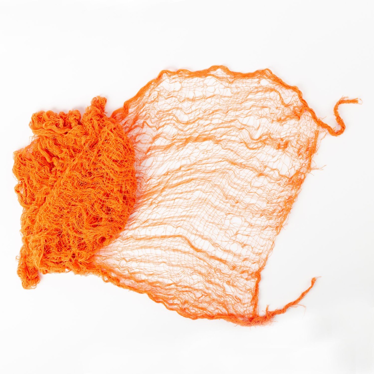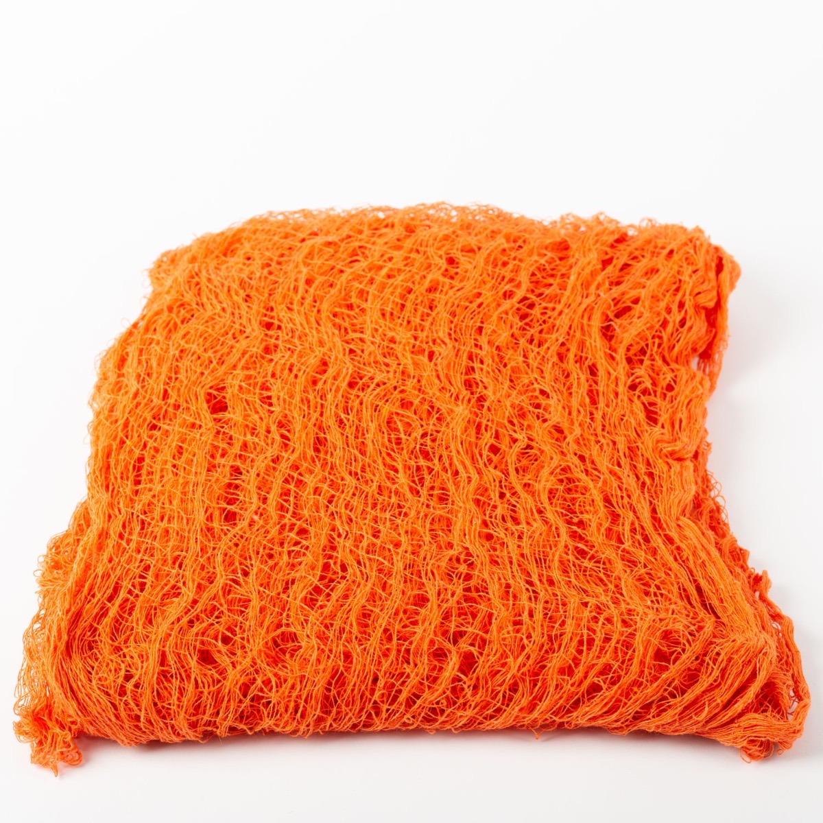 Halloweenská dekorační látka ZELENA, hrubá síťovina, oranžová, 76x500cm