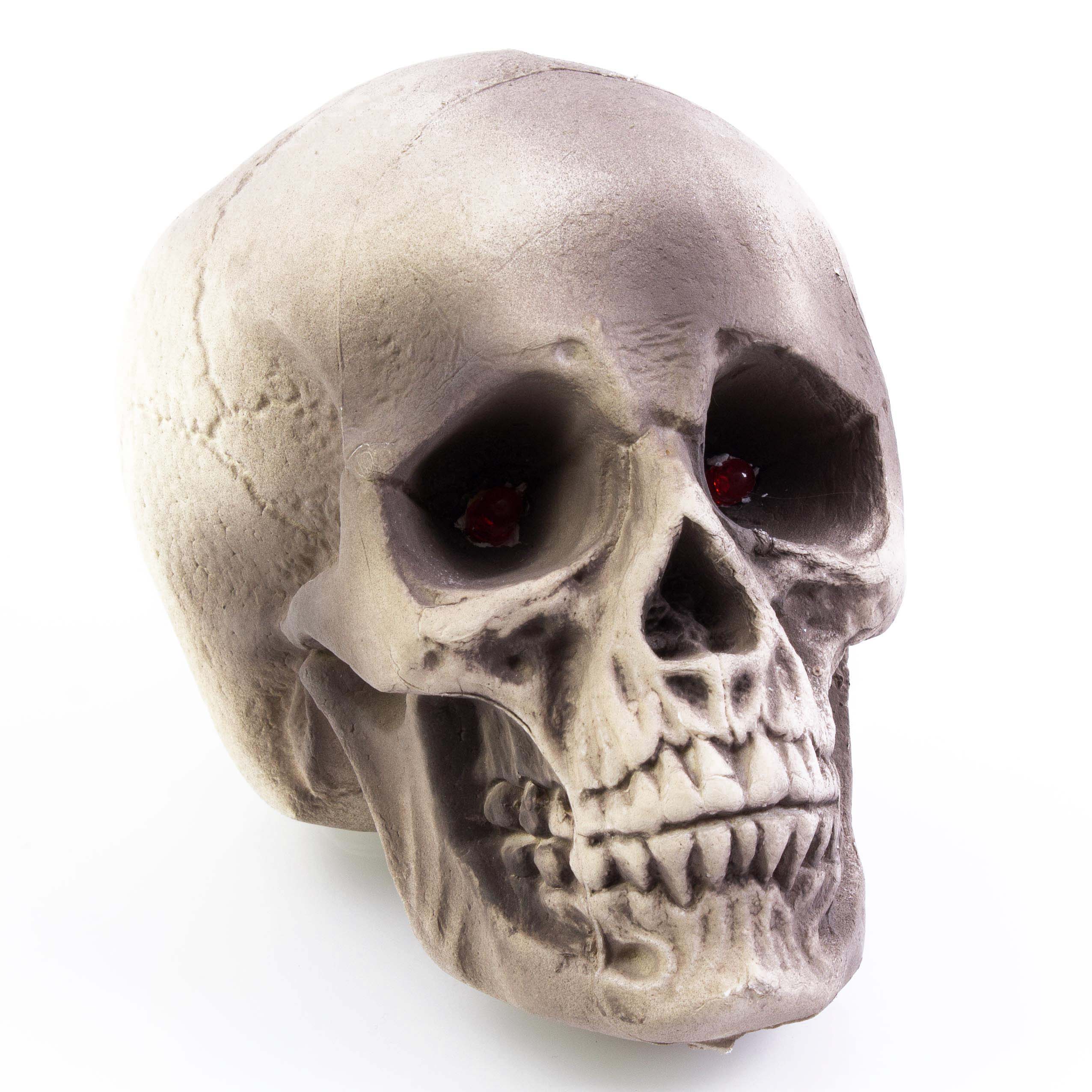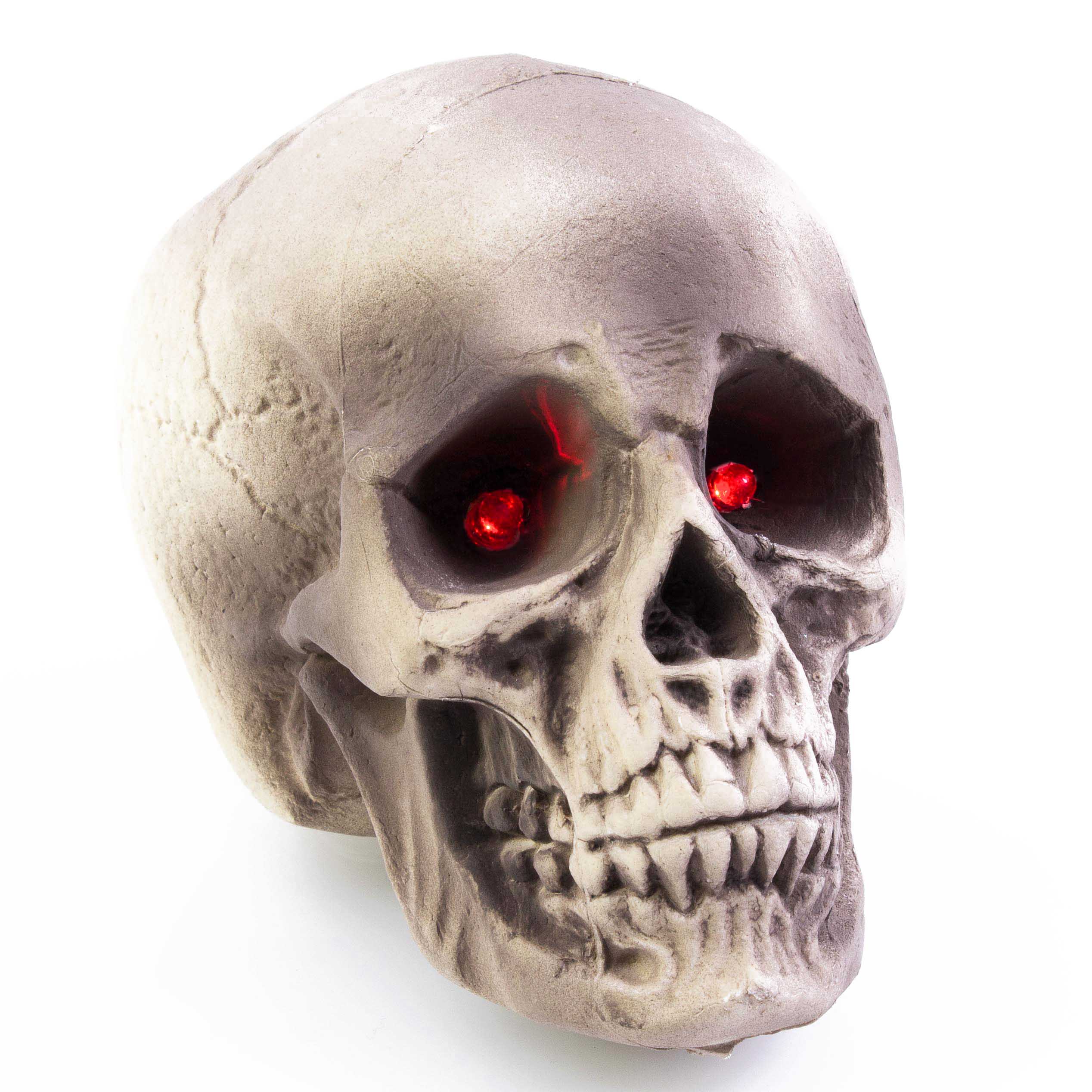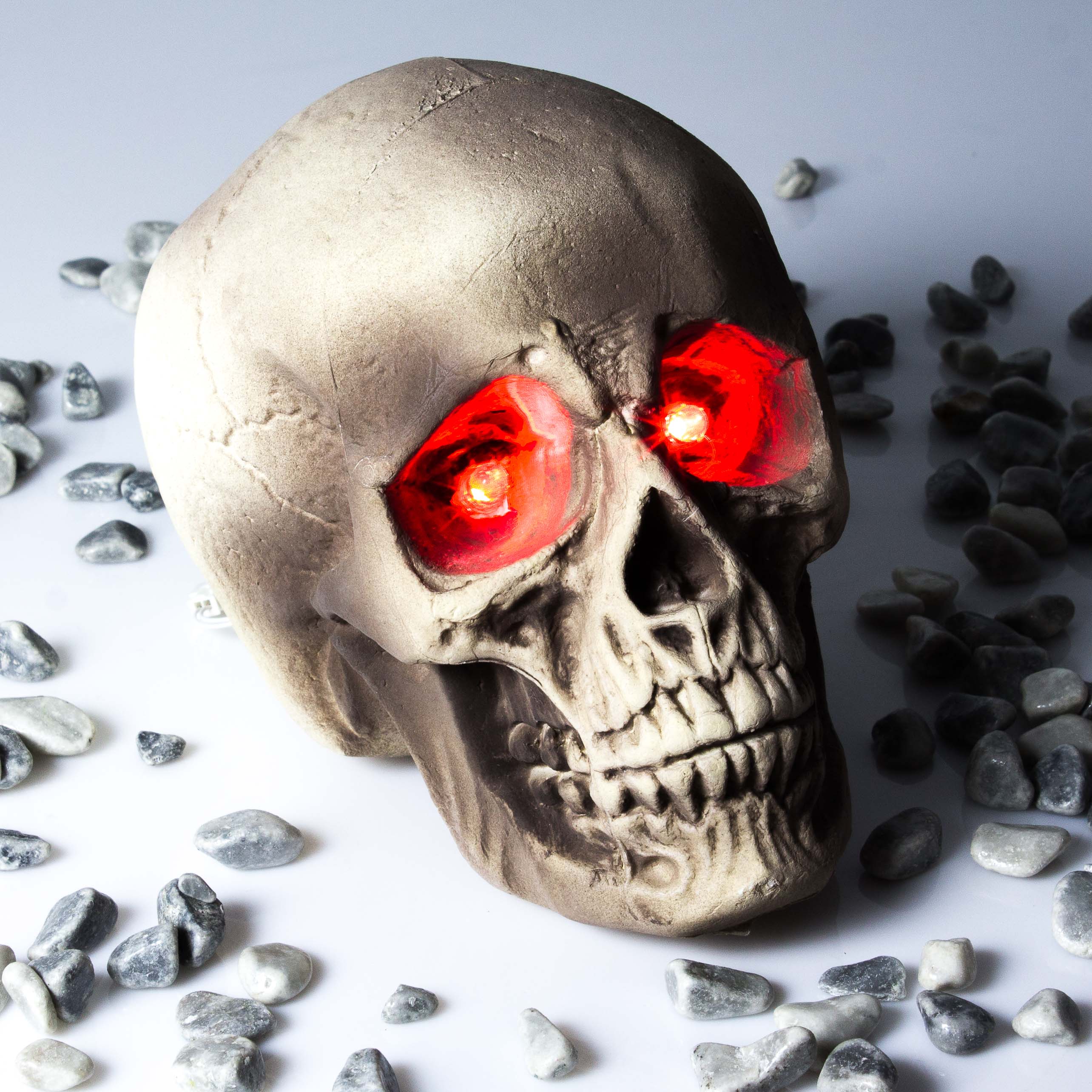 Halloweenská lebka MATTY, béžovo-šedá, LED diody, 21x15x16cm