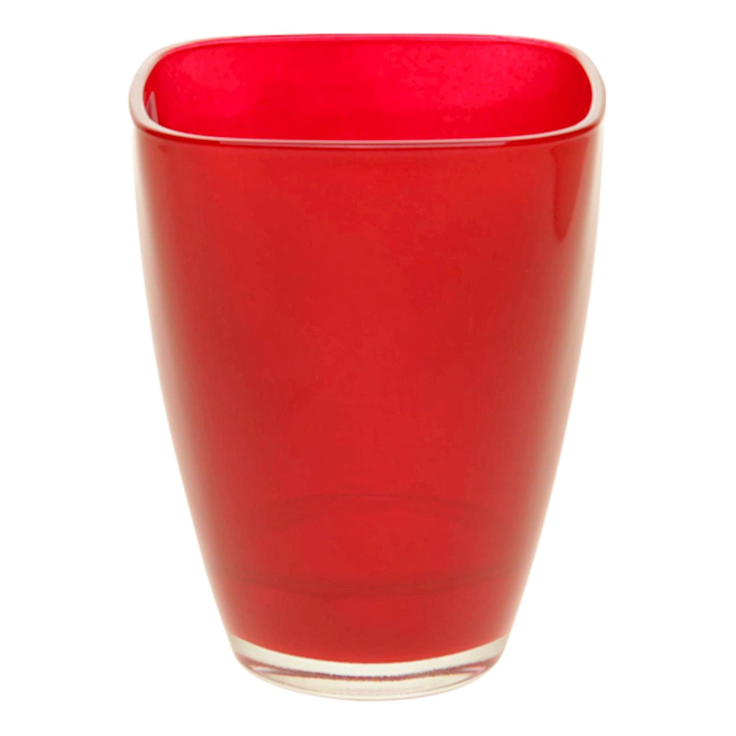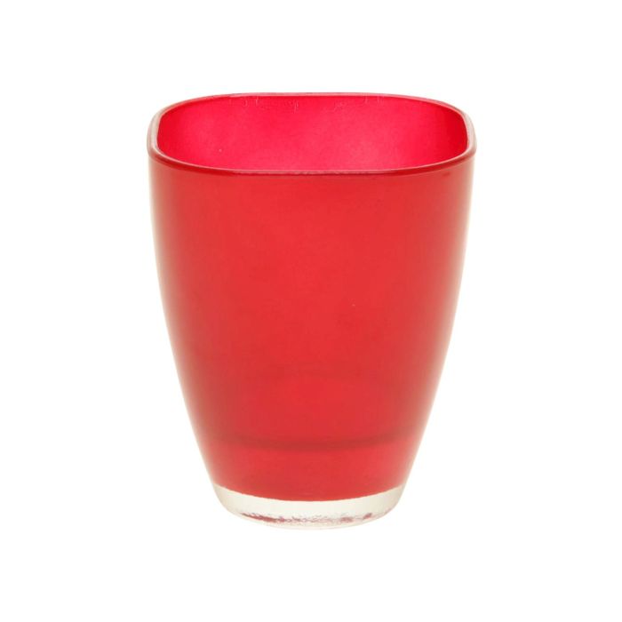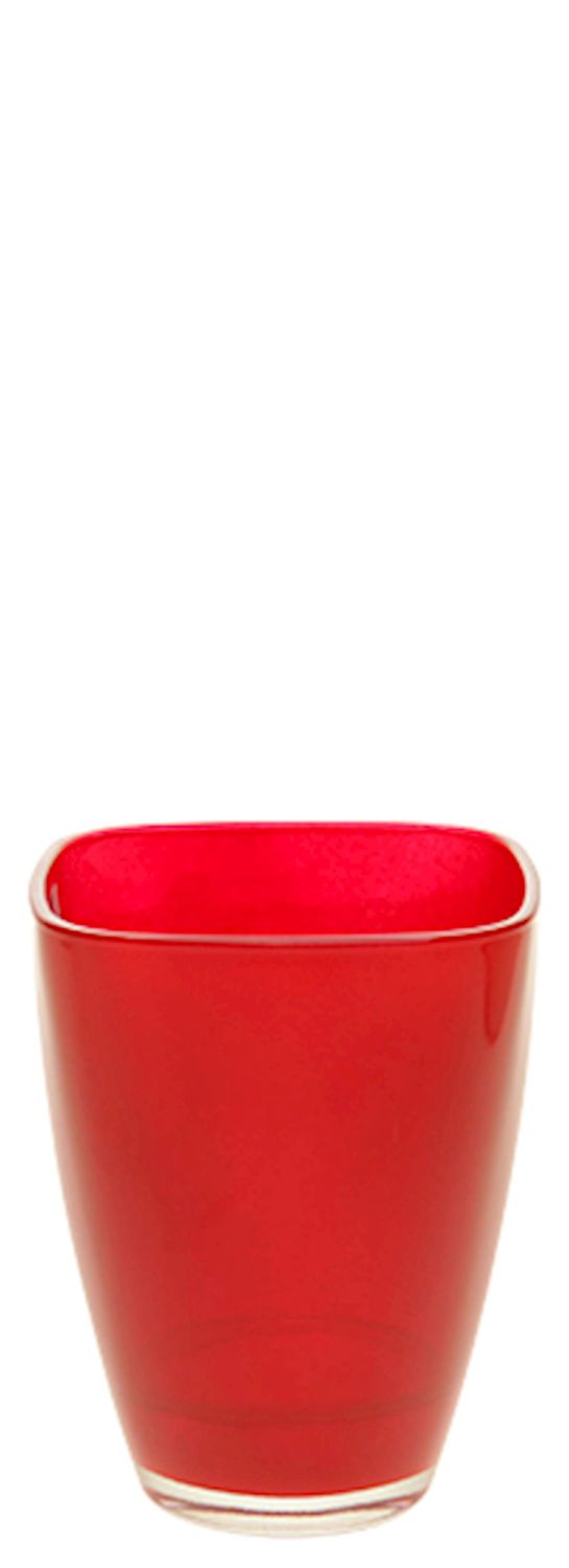 Hranatá skleněná váza YULE, červená, 13,5x13,5x17cm