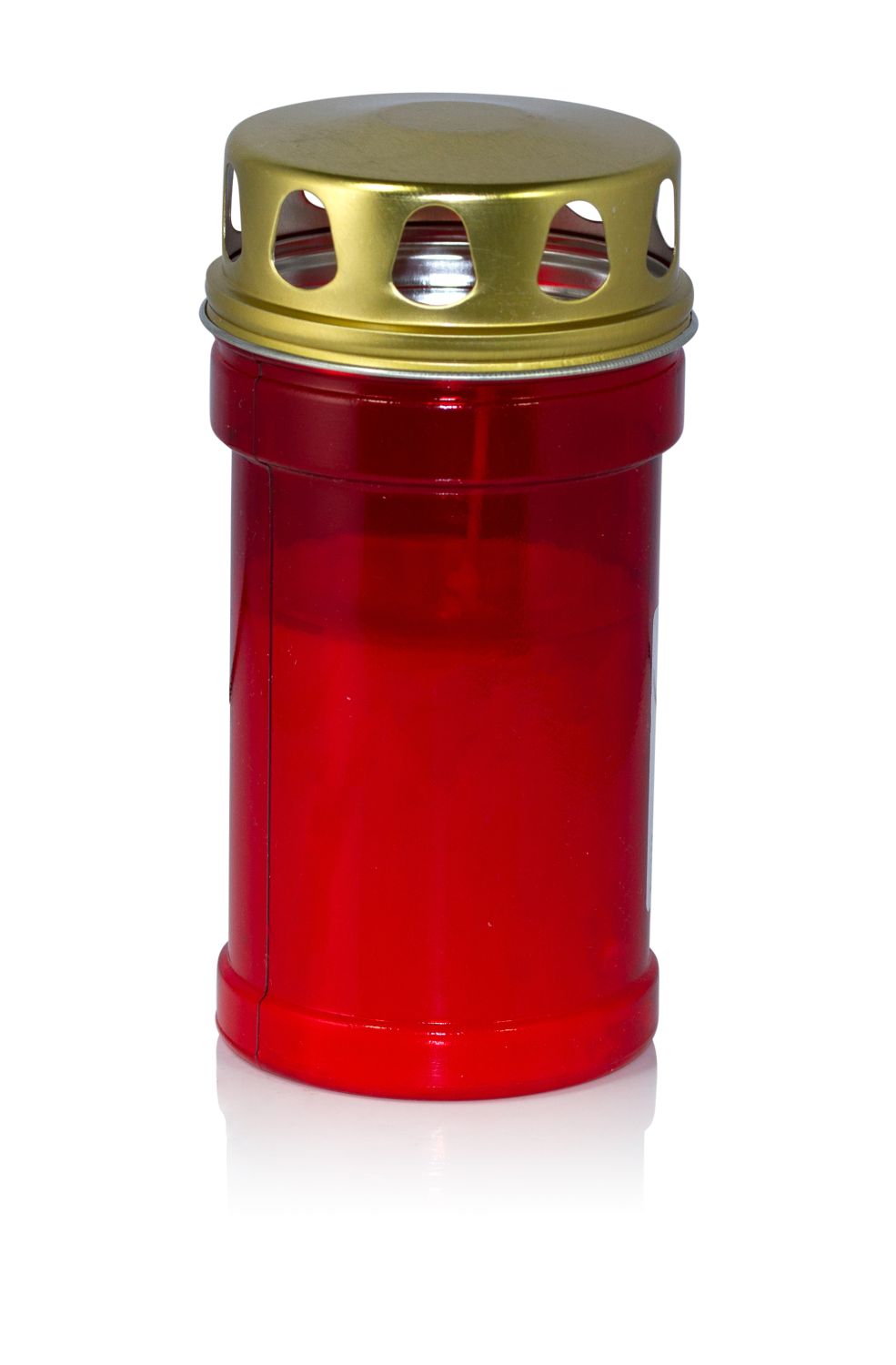 Hrobové světlo AMONIA s víkem, červenobílé, 14,5cm, Ø7cm, 60h