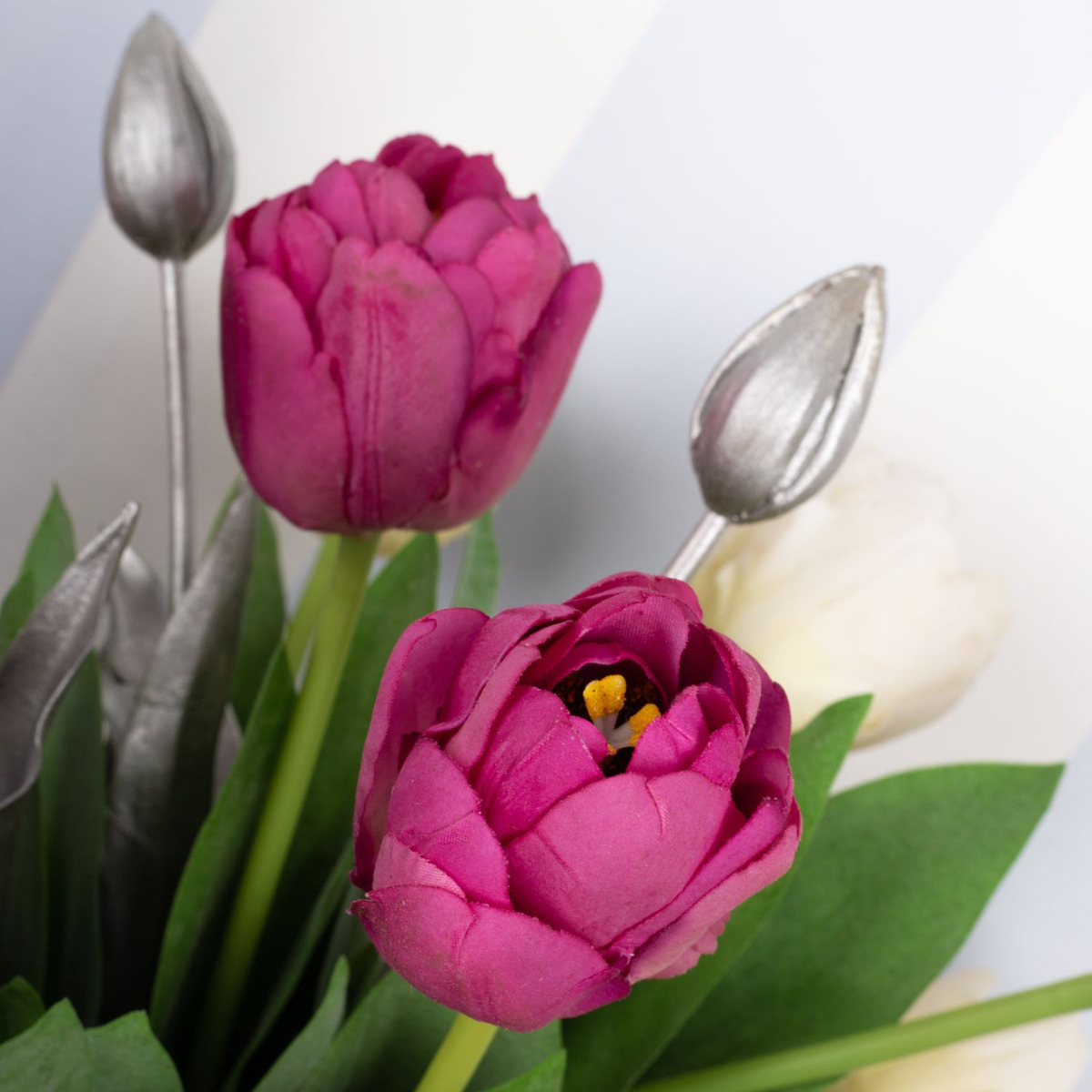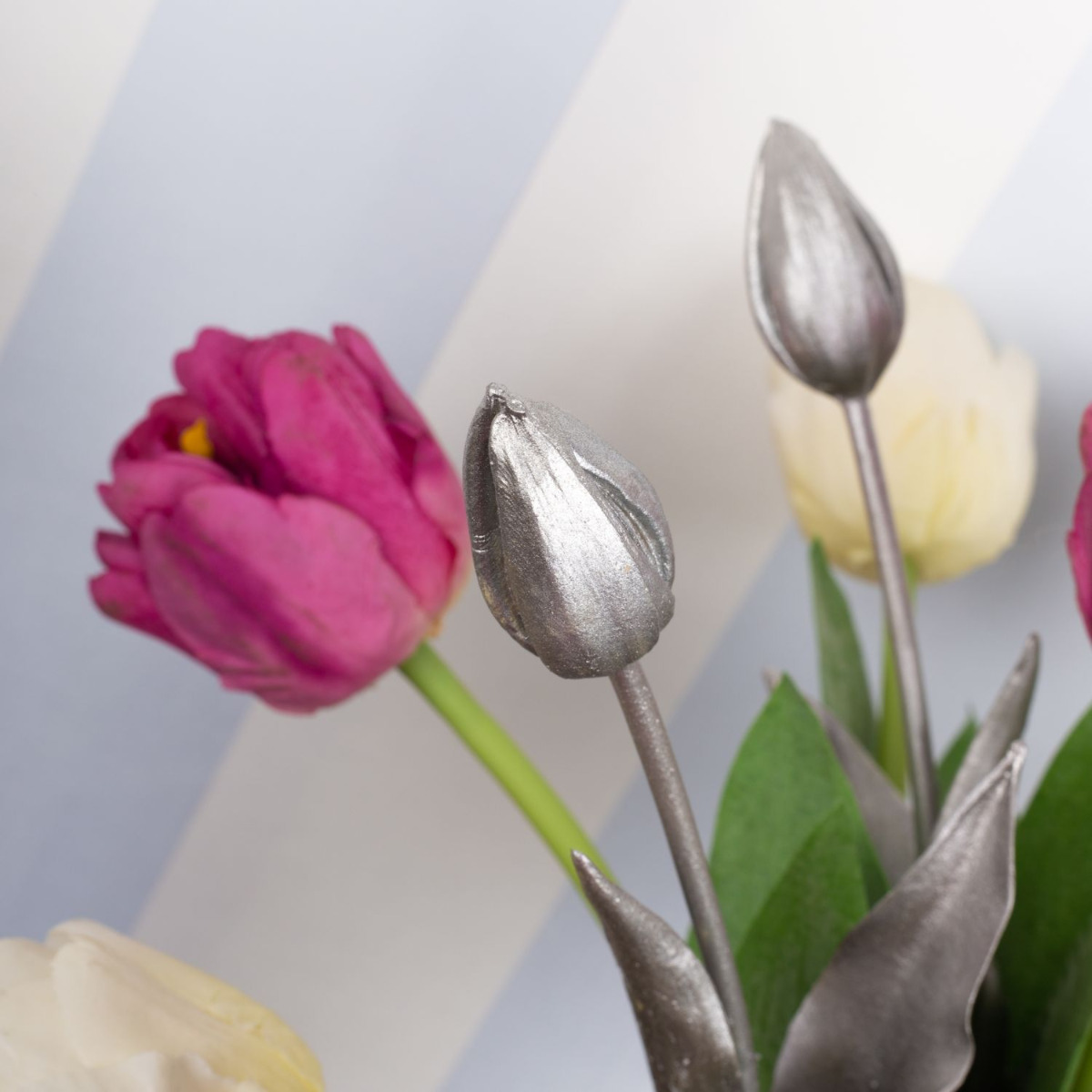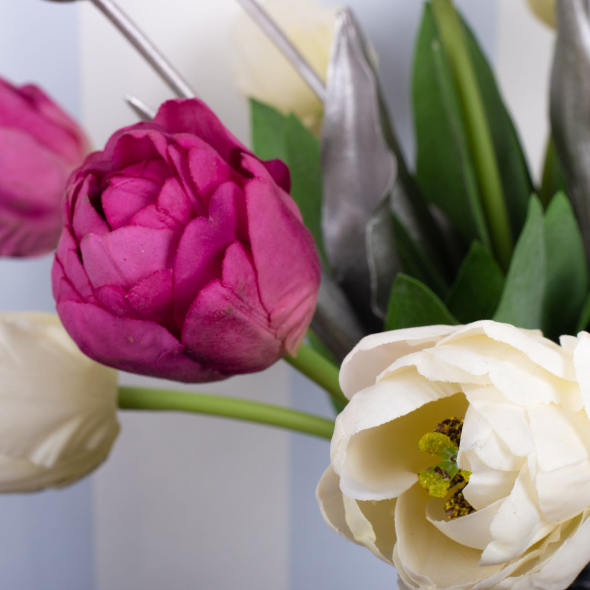 Myslete na růžovou! Konečně jaro! Po dlouhé zimě doslova čekáte na pár slunečních paprsků a s nimi spojené jaro! Ale ještě než začnou v přírodě kvést tulipány, můžeme barevné období přenést do našich domovů. Naše růžové a bílé tulipány vypadají tak opravdově, že se musíte dvakrát podívat, abyste si uvědomili, že jde o umělé květiny. Stříbrné tulipány působí obzvlášť moderně a jedinečně. Kdo si myslí, že čas svíček skončil s příchodem chladného období, je na omylu. Lidé si rádi zapálí svíčku i o Velikonocích. Vneste do svého domova jaro! Nakupte si vzhled!