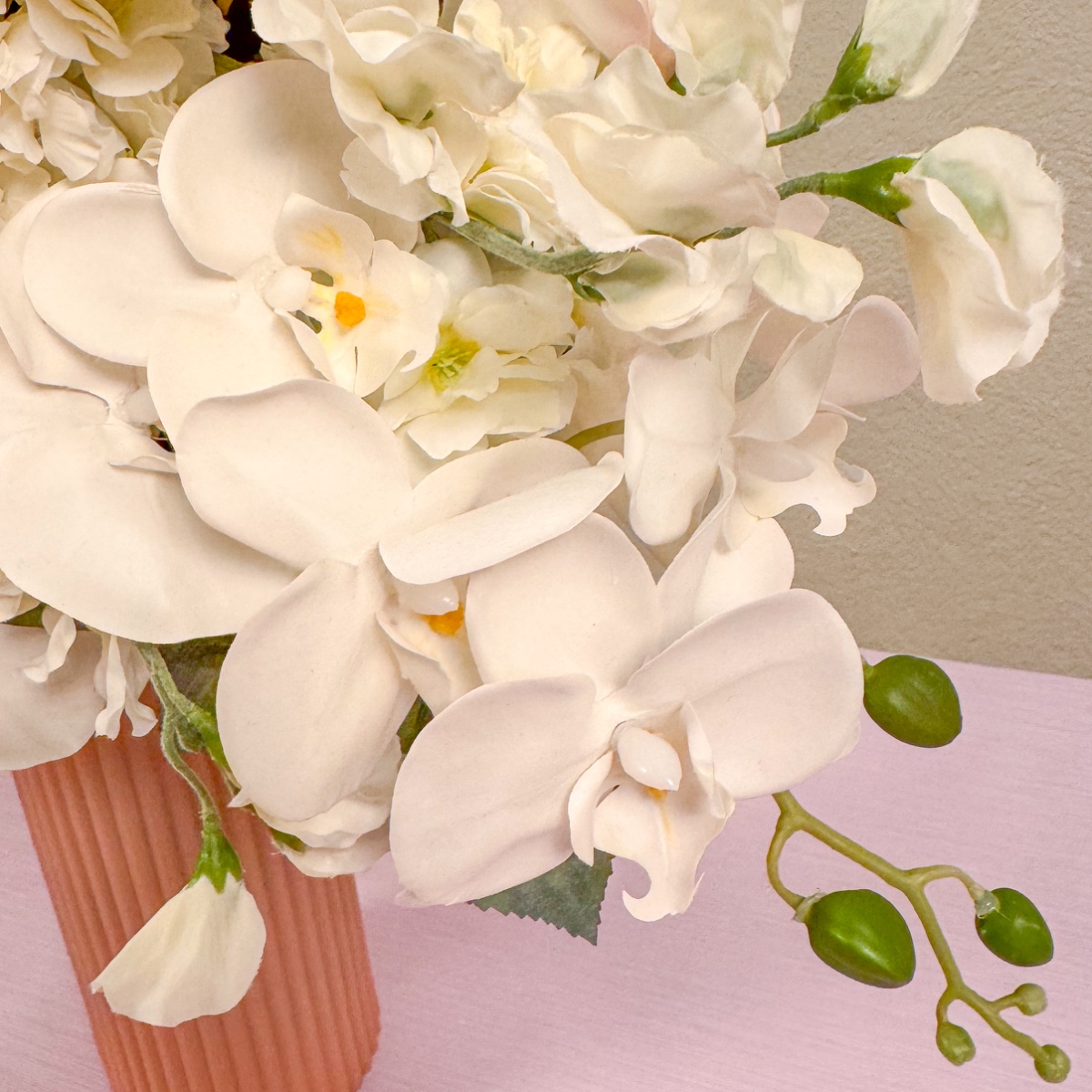Růže a orchideje! Jediné, co Celine potřebovala ke své vysněné svatbě, byla ta správná svatební kytice. Svěží světle růžové růže s nádechem exotických orchidejí - romantické, elegantní a s něčím, co má něco do sebe. Výsledkem je květinové umělecké dílo, které dokonale ladí s jejím velkým dnem. Nakupte si tento vzhled!