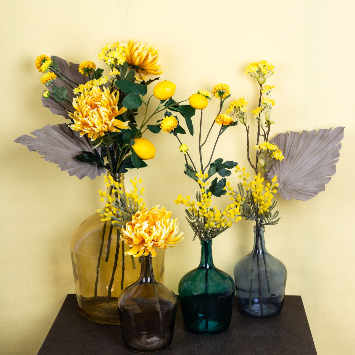 ...možnosti jsou nekonečné! Citronová větvička jako součást kytice? To je možné pouze s Artplants! Docela žlutá je náš vzhled! A právě toho jsme chtěli tímto vzhledem dosáhnout. Žlutá je barvou veselosti a pozitivity. Takto působí i náš vzhled, který se skládá z chryzantém, mimózy a květů javoru. Barva orámovaná palmovým listem zůstává nenápadně v pozadí a dodává květům ještě větší zářivost. Skleněné lahvičky s balónky jsou k dispozici v tolika barvách, že se prostě hodí ke všemu! Nakupujte vzhled!