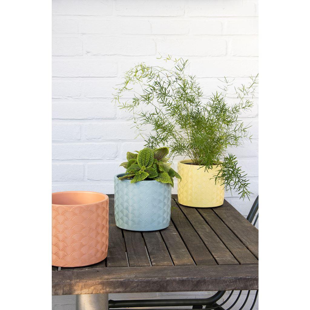 Kelímek FERDINANTA se vzorem, keramika, světle modrá matná, 12,3 cm, Ø13,5 cm