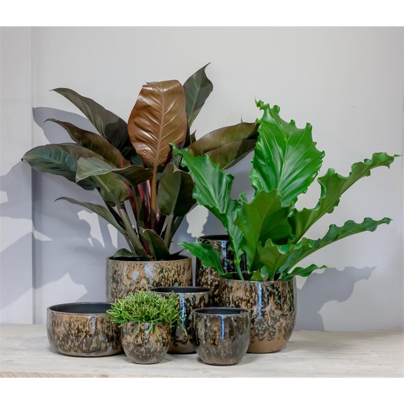 Keramická váza ELIEL, kropenatá, hnědo-modrá, 35cm, Ø18cm