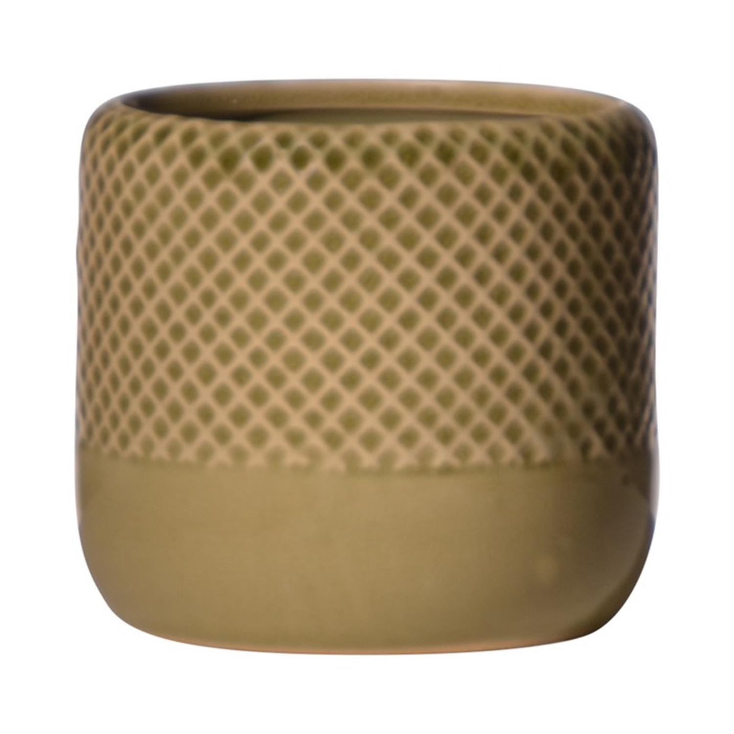 Keramický květináč DANYLO, kosočtvercový vzor, zelenohnědý, 10,5cm, Ø12cm