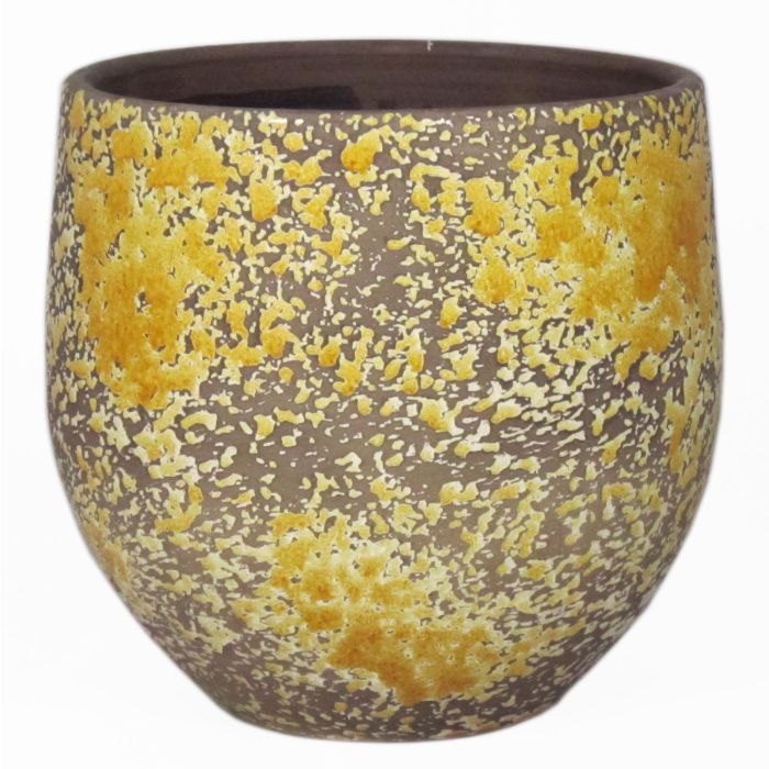 Keramický květináč TSCHIL, rustikální, barevný přechod, okrově žlutohnědá, 24cm, Ø24cm