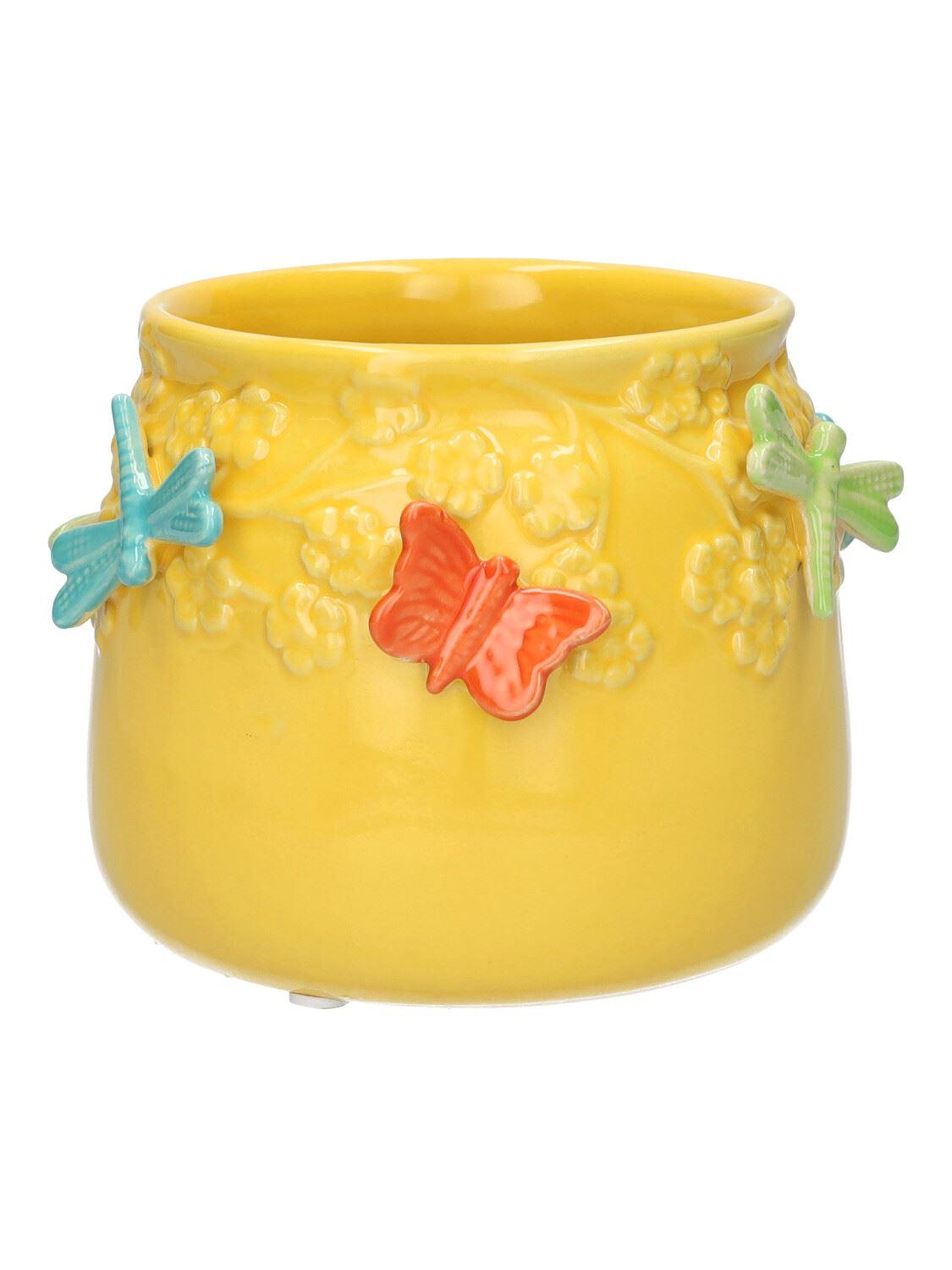 KIMANA keramický květináč, 3D motýli vážky, žluto-oranžovo-modro-zelený, 11cm, Ø13,5cm